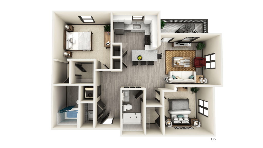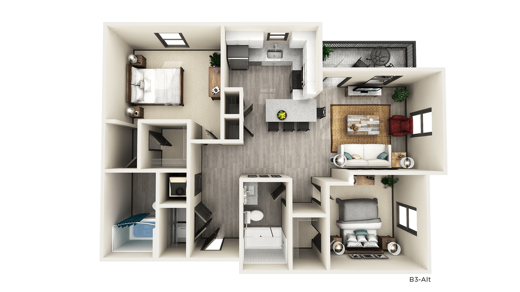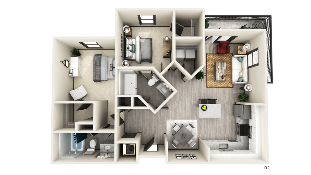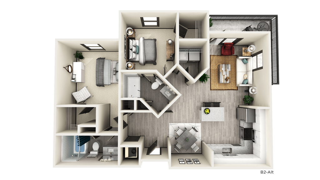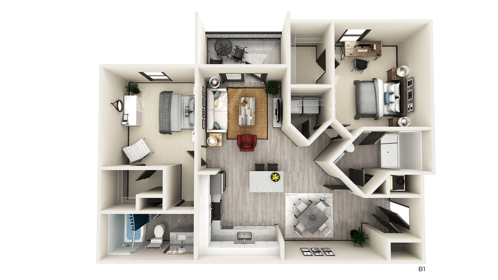 1 Dormitorio, 1 Baño, 915 pies²Disponible AhoraGalería del Modelo