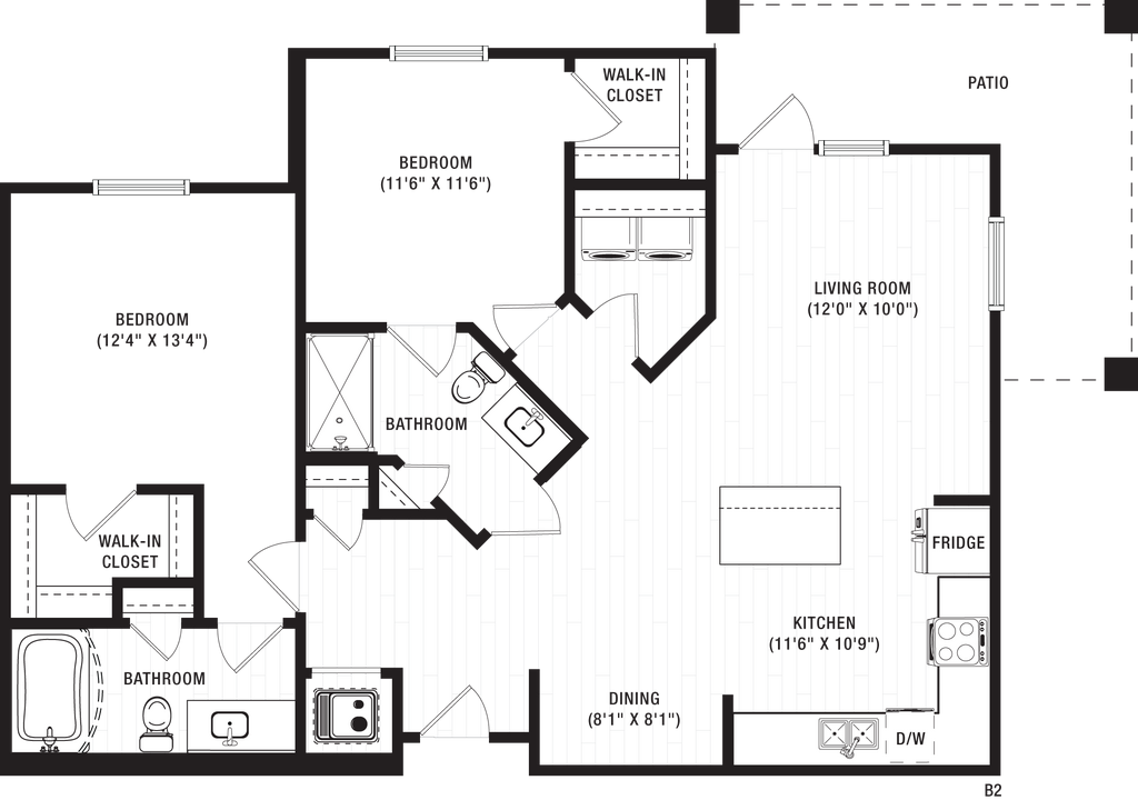 1 Dormitorio, 1 Baño, 898 pies²Disponible AhoraGalería del Modelo