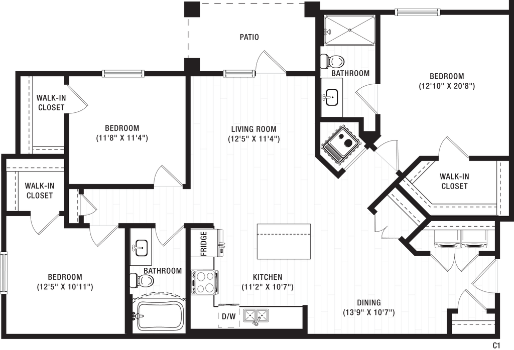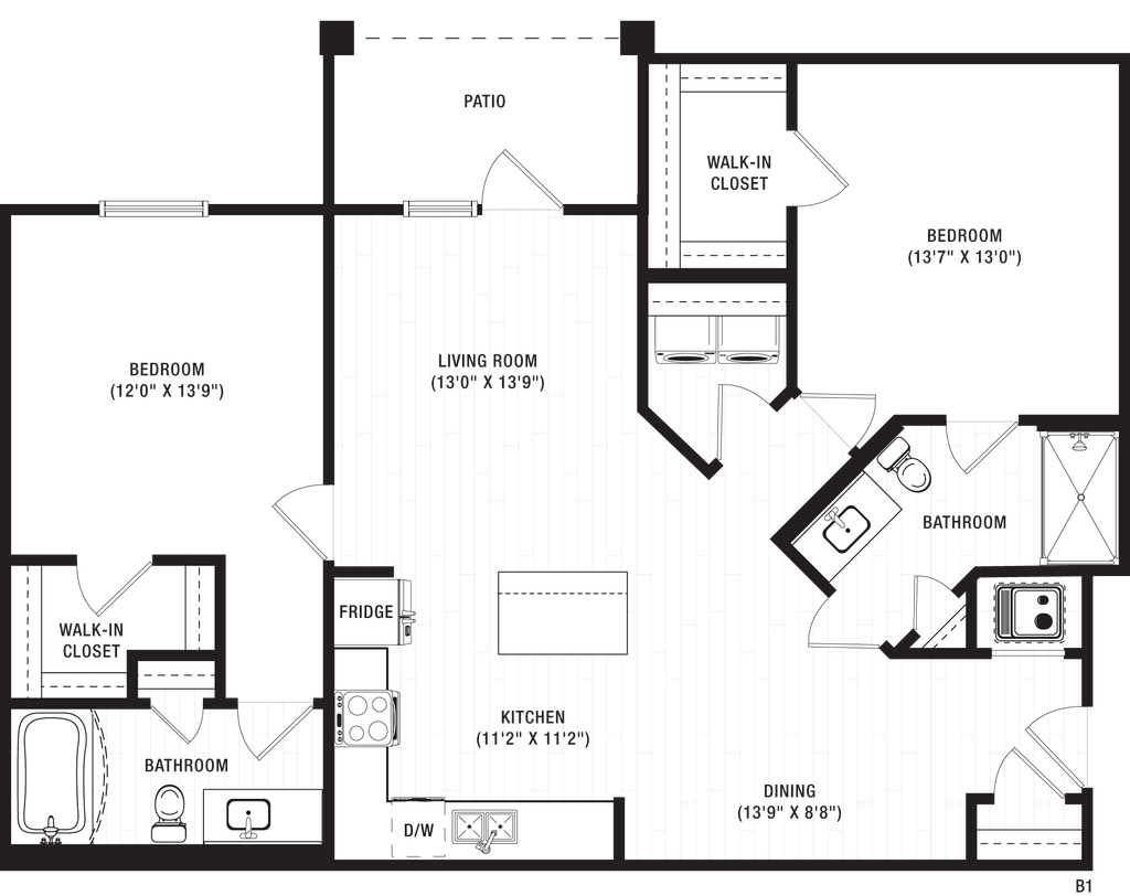 Modelo de apartamento: A1Desde $1,6181 Dormitorio, 1 Baño, 898 sq ftDisponible Ahora![]()