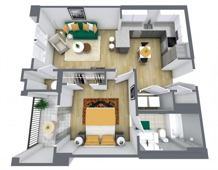 1 Dormitorio, 1 Baño, 579-648 pies²Galería del Modelo