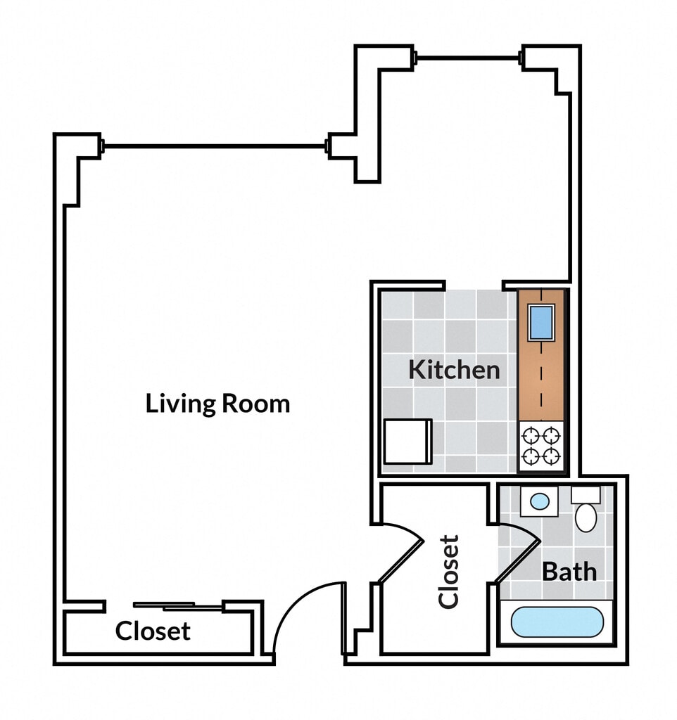 Estudio, 1 Baño, 528 pies²Disponible AhoraGalería del Modelo