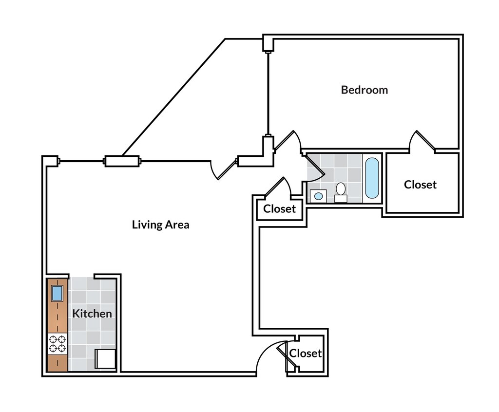 Estudio, 1 Baño, 563 pies²Disponible AhoraGalería del Modelo