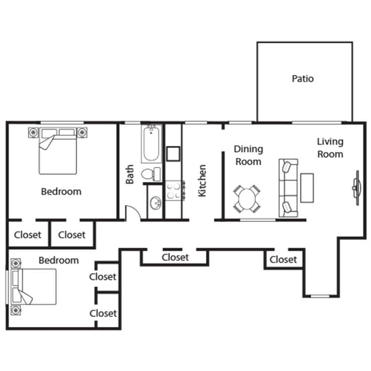 1 Dormitorio, 1 Baño, 1034 pies²Disponible AhoraEl más grandeEsta opción tiene las unidades más grandes para este modeloGalería del Modelo