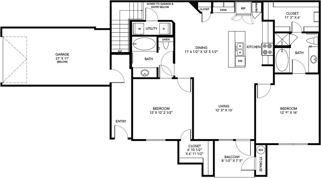 1 Dormitorio, 1 Baño, 874 pies²Disponible AhoraGalería del Modelo