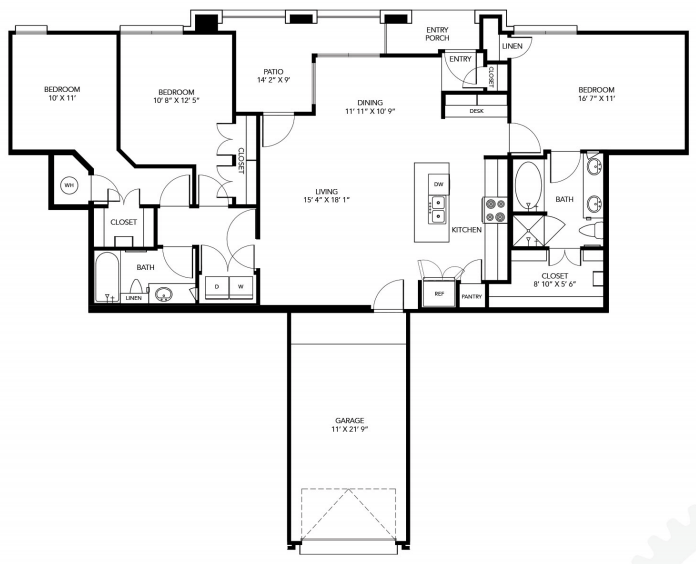 Modelo de apartamento: A3Desde $1,5401 Dormitorio, 1 Baño, 874 sq ftDisponible Ahora![]()