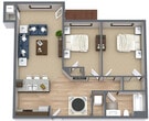 Modelo de apartamento: 2 Bed/1 BathDesde $1,5652 Dormitorios, 1 Baño, 960 sq ftNo Disponible2 Bed/1 Bath - Plano 1 2 Bed/1 Bath ADA