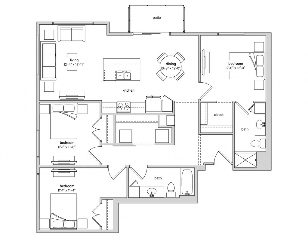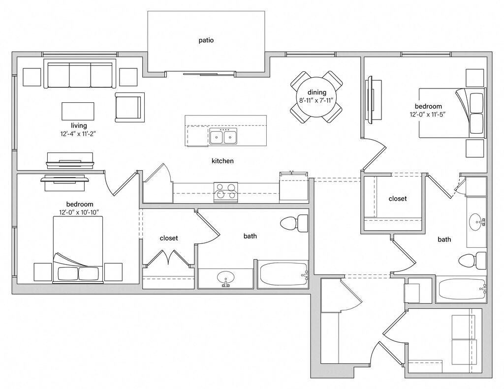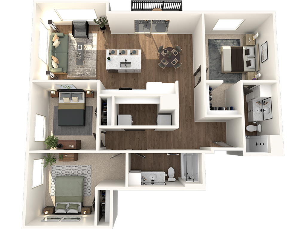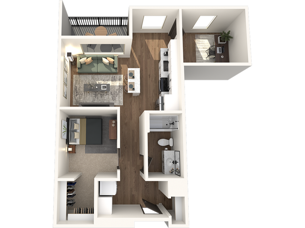 Modelo de apartamento: LariatDesde $1,6571 Dormitorio, 1 Baño, 707 sq ftDisponible Ahora![]()