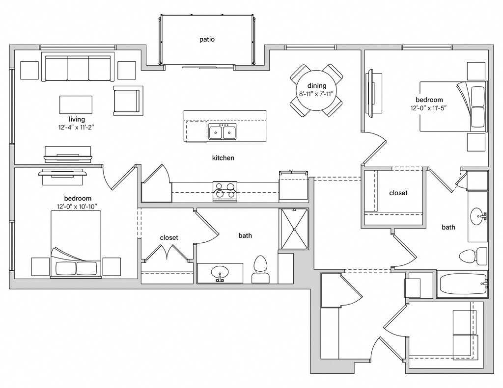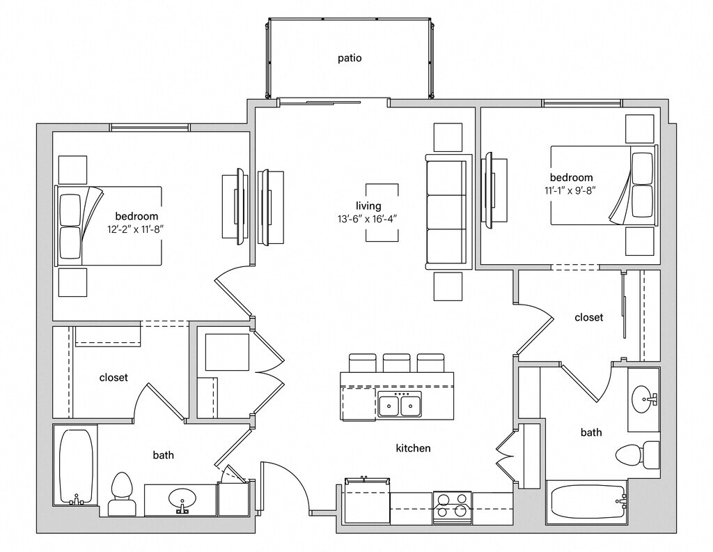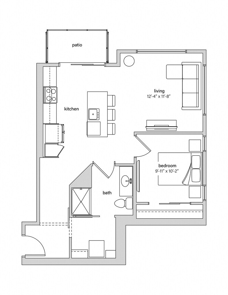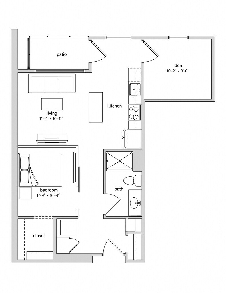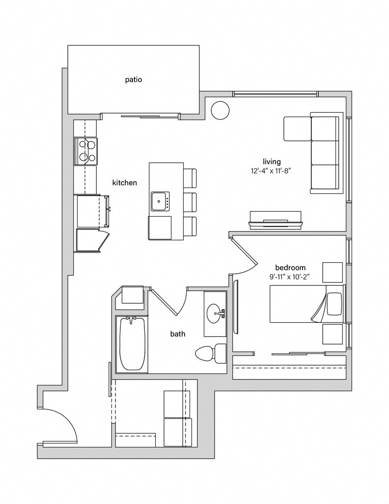 1 Dormitorio, 1 Baño, 714 pies²Disponible AhoraEl más grandeEsta opción tiene las unidades más grandes para este modeloGalería del Modelo