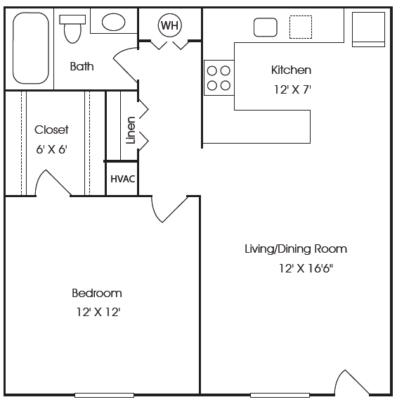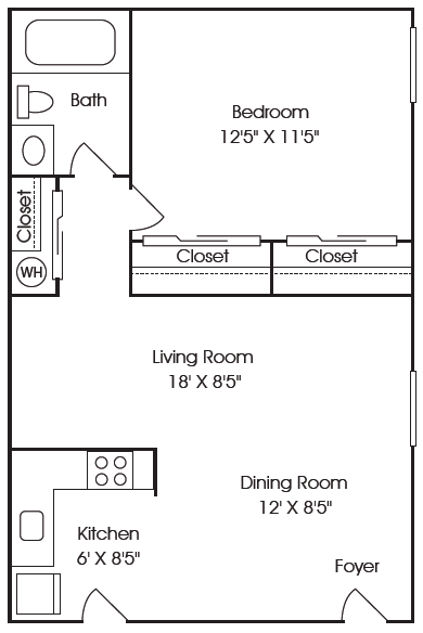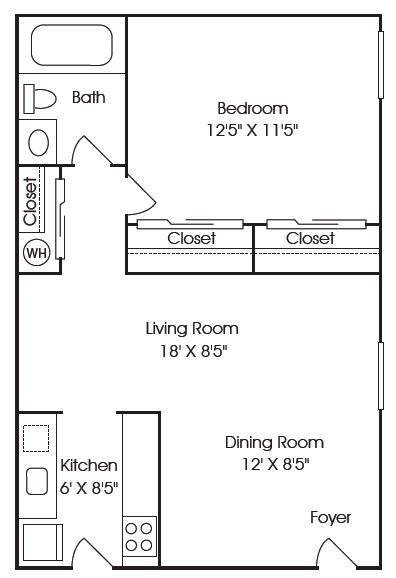 Modelo de apartamento: A1$1,8141 Dormitorio, 1 Baño, 650 sq ftDisponible Ahora![]()