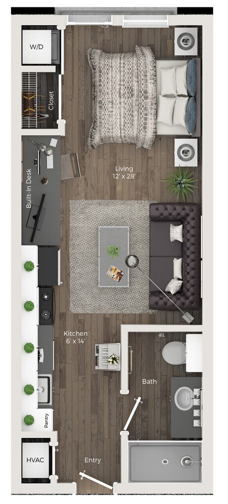 Estudio, 1 Baño, 401 pies²Disponible AhoraGalería del Modelo