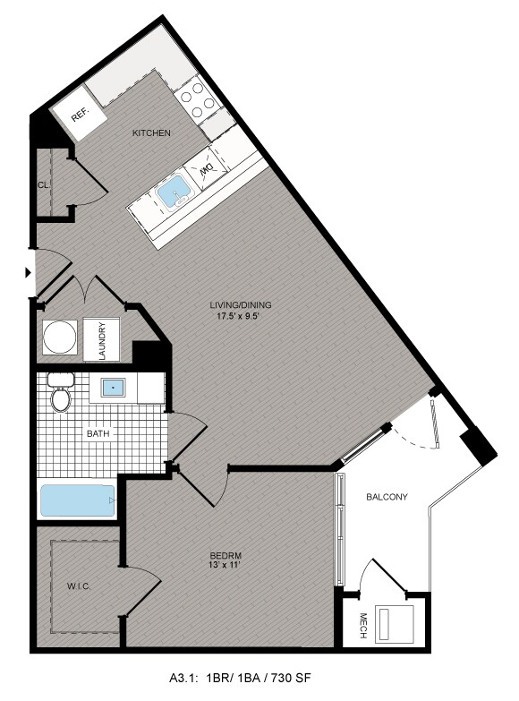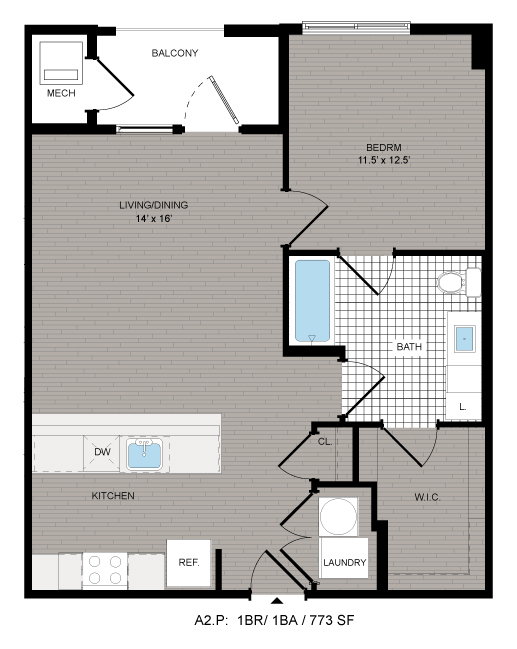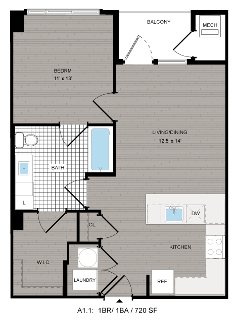 1 Dormitorio, 1 Baño, 720-730 pies²Disponible AhoraGalería del Modelo