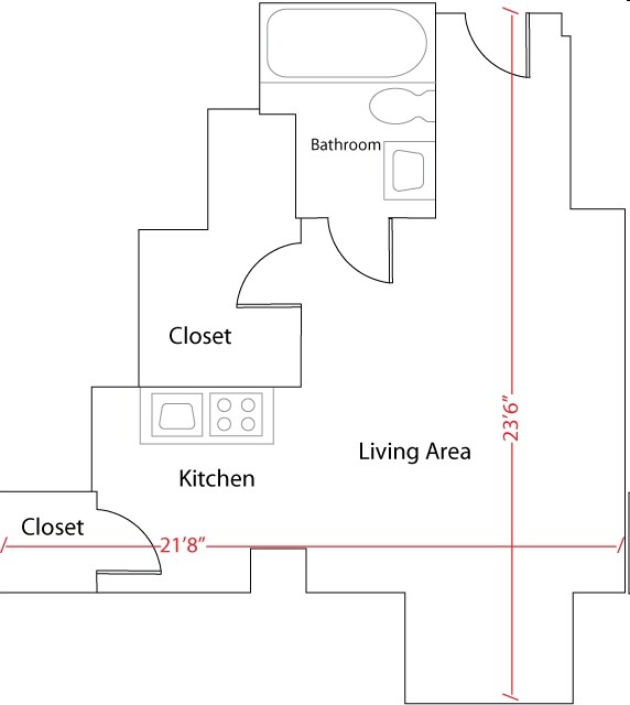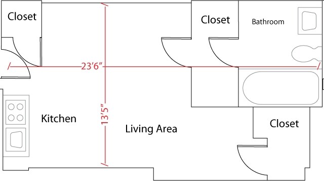 Studio, 1 bath