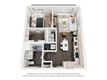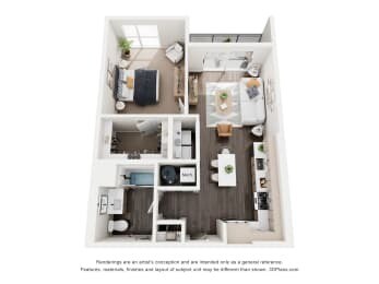 Modelo de apartamento: A1 ALT$2,2951 Dormitorio, 1 Baño, 715 sq ftDisponible Ahora![]()