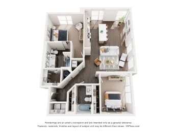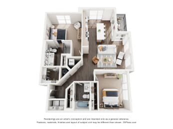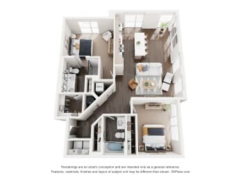 Modelo de apartamento: A2Desde $2,2651 Dormitorio, 1 Baño, 770 sq ftDisponible Ahora![]()
