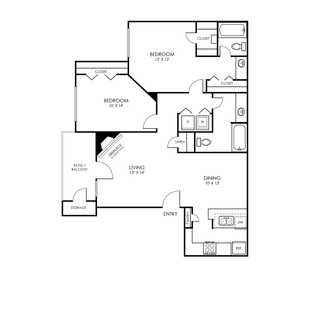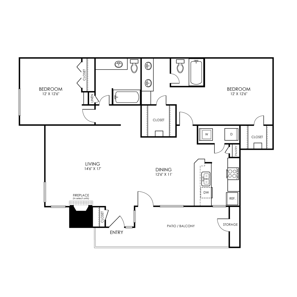 Modelo de apartamento: A2Desde $1,1801 Dormitorio, 1 Baño, 730 sq ftDisponible Ahora![]()