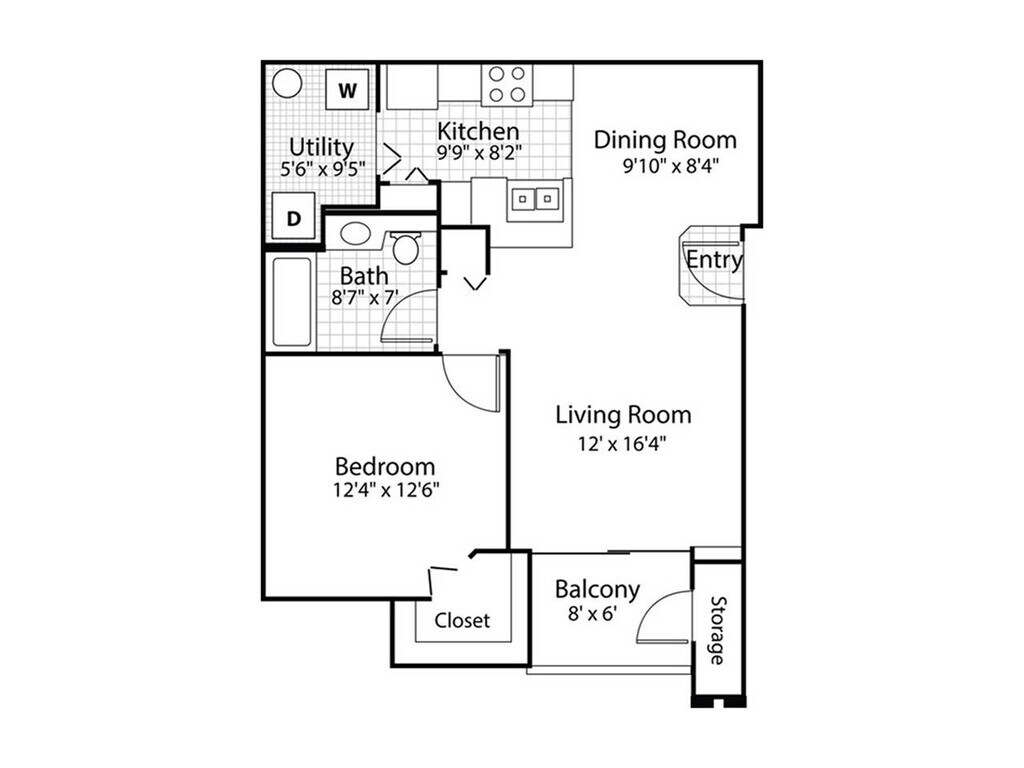 1 Dormitorio, 1 Baño, 802 pies²Disponible AhoraGalería del Modelo