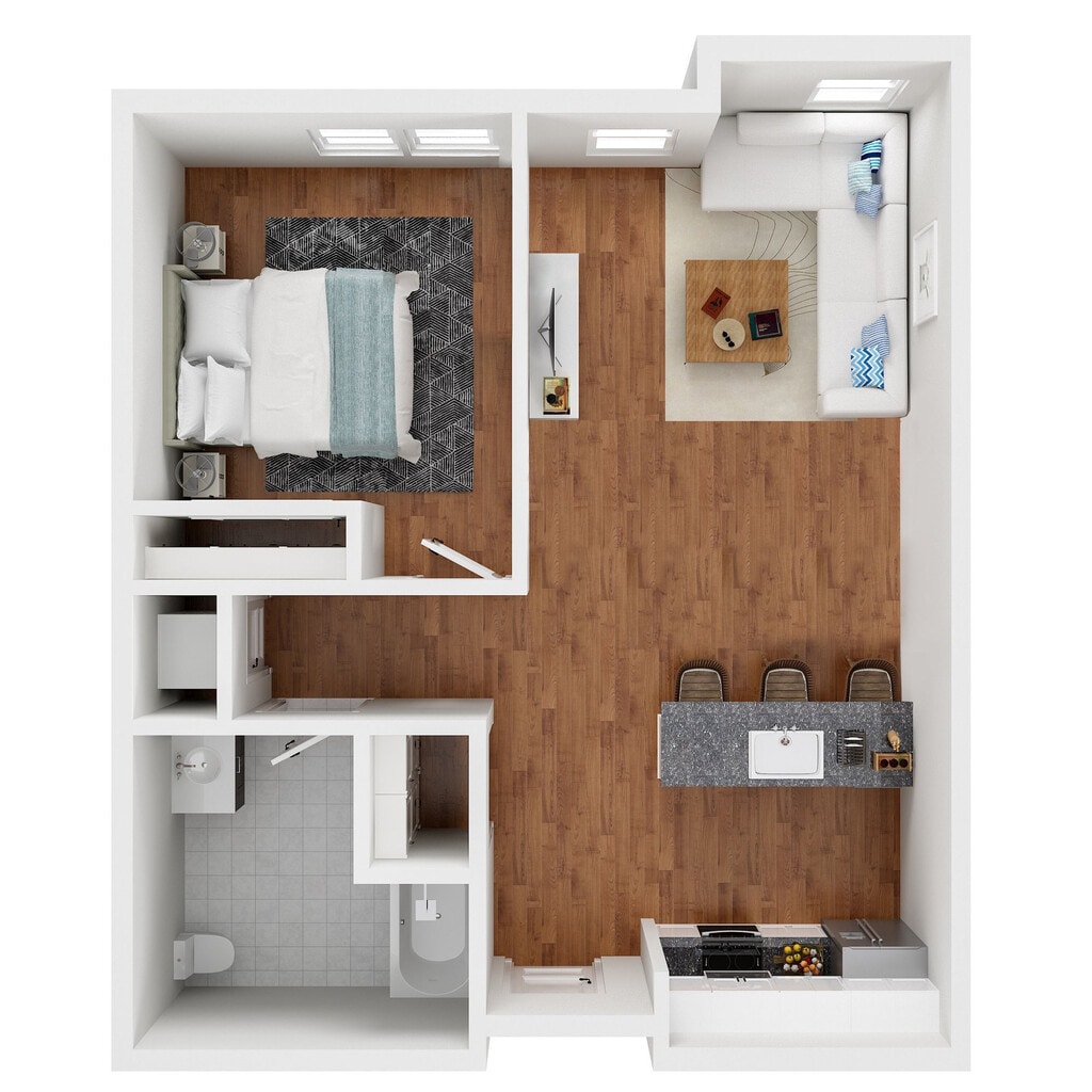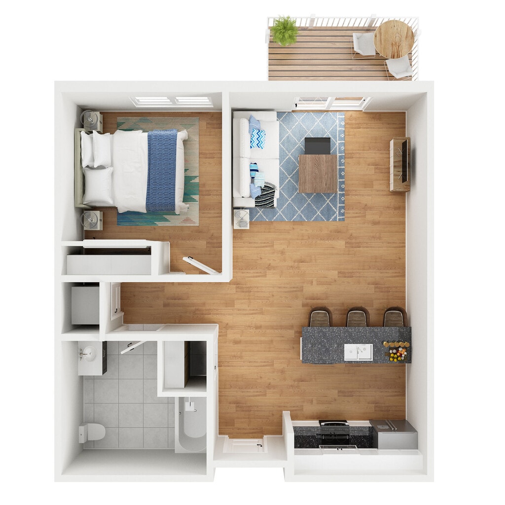 1 Dormitorio, 1 Baño, 695-750 pies²Disponible AhoraGalería del Modelo