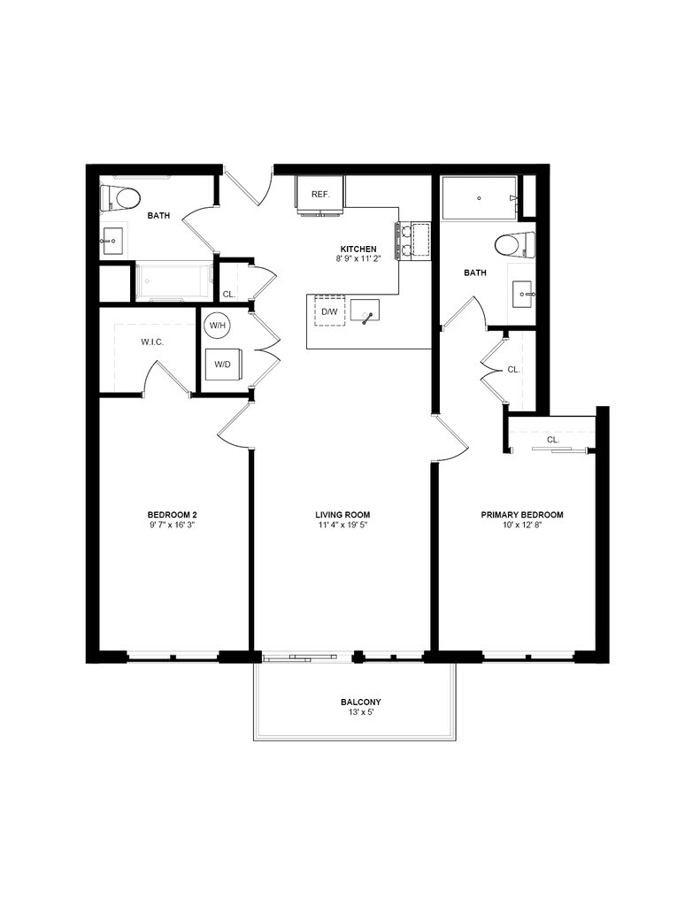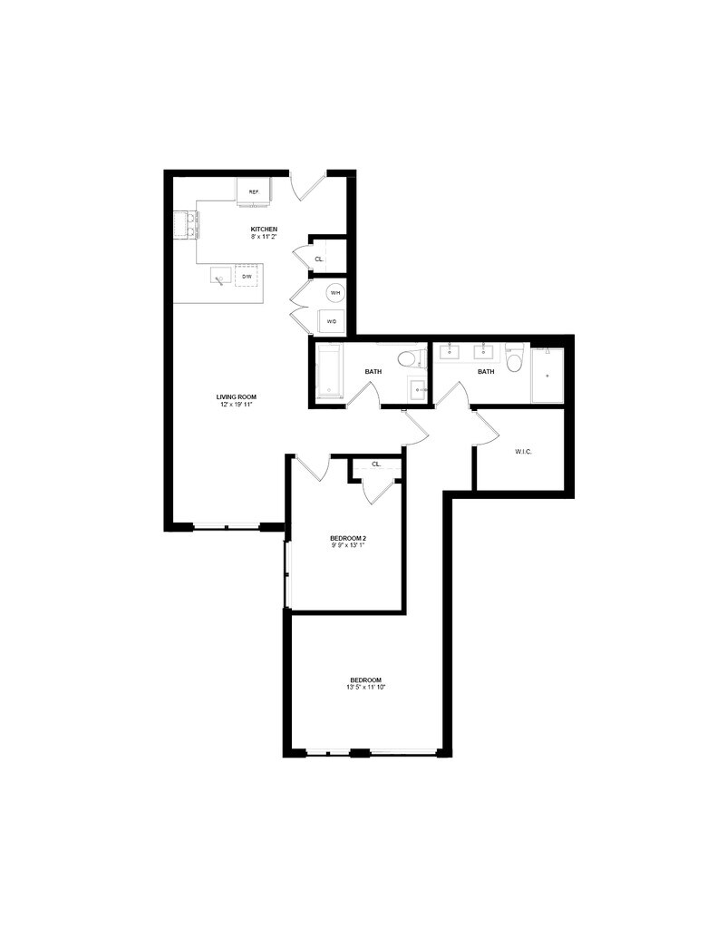 B12 - Plano 1 Unidad de apartamento: 521Modelo de apartamento: B12$3,8002 Dormitorios, 2 Baños, 1264 sq ftDisponible Ahora