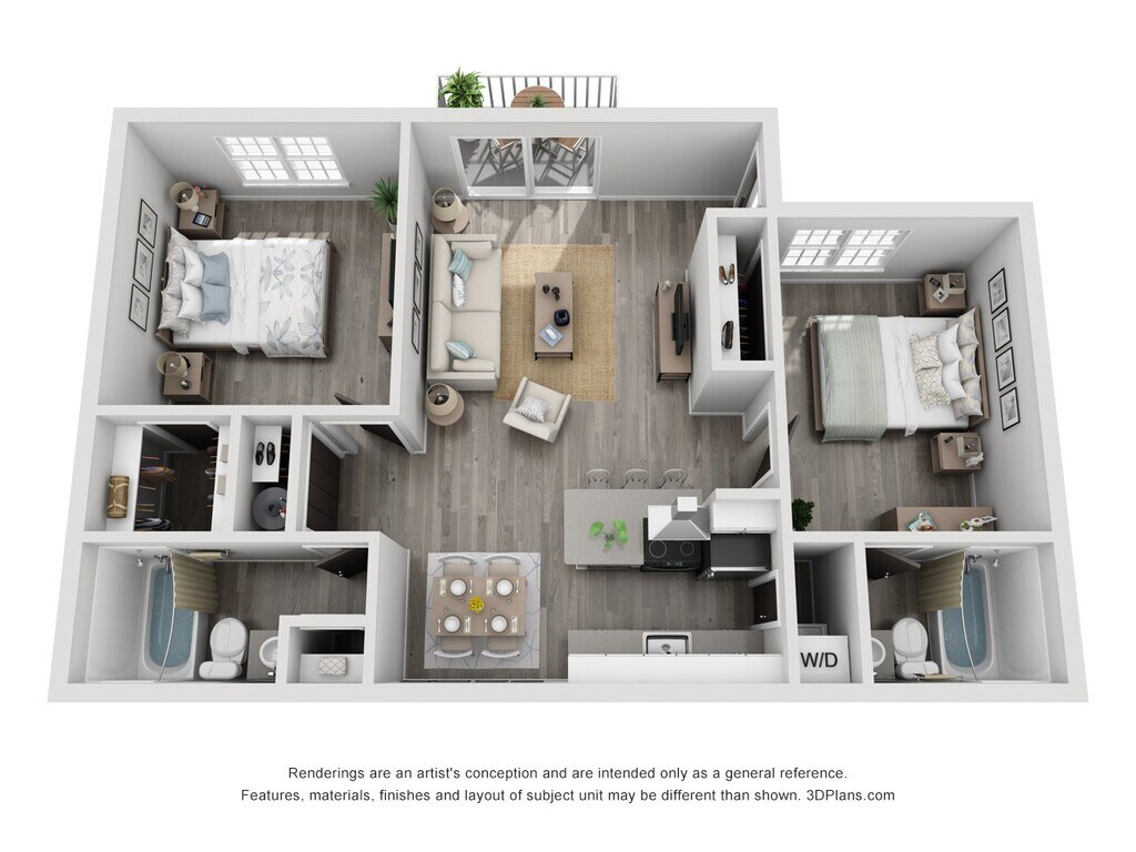 Modelo de apartamento: B1Desde $1,8432 Dormitorios, 2 Baños, 872 sq ftDisponible Ahora![]()