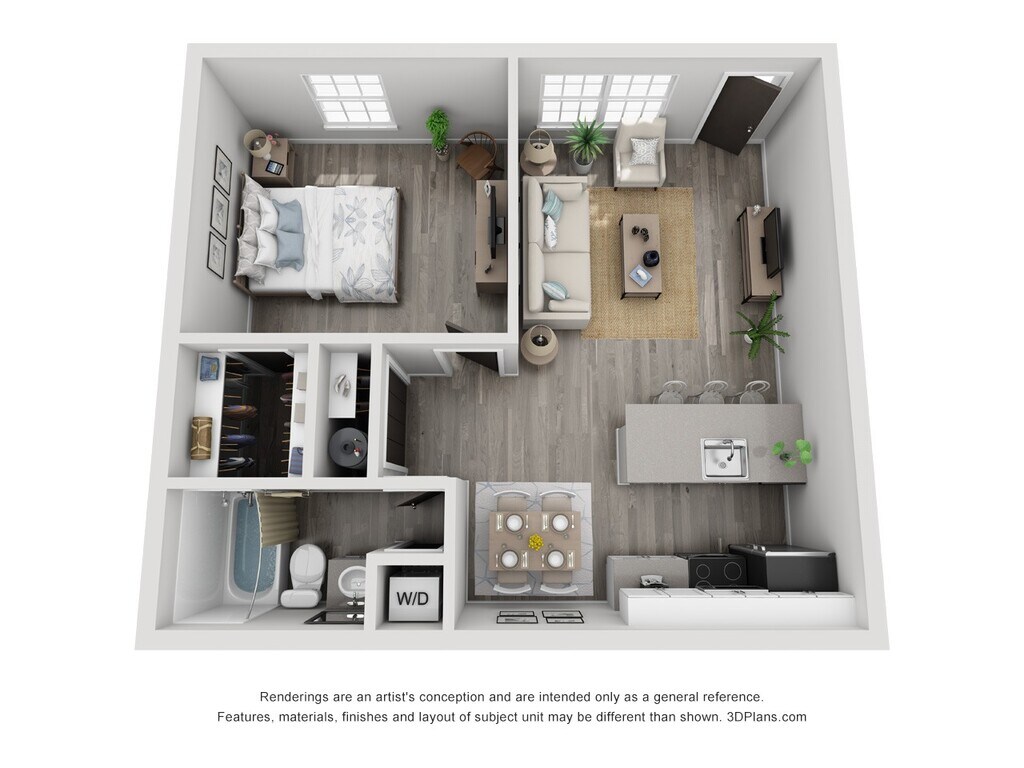 1 Dormitorio, 1 Baño, 610 pies²Disponible AhoraGalería del Modelo