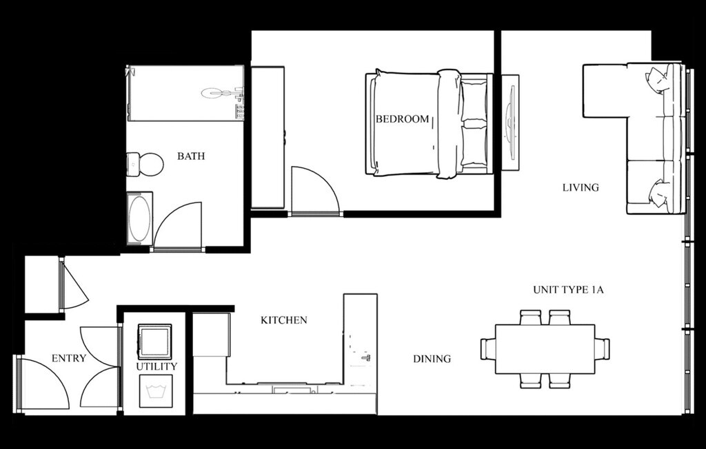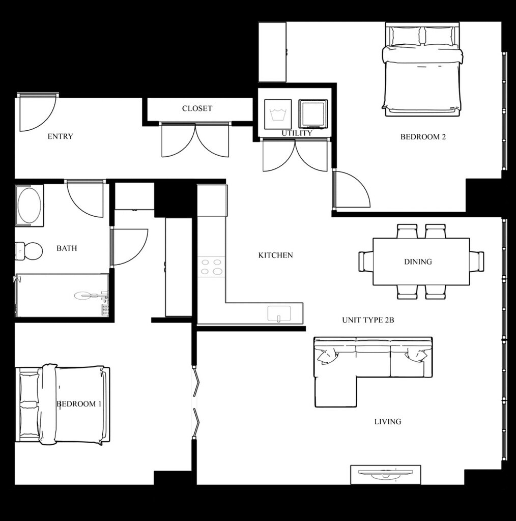 1 Dormitorio, 1 Baño, 770 pies²Disponible AhoraGalería del Modelo