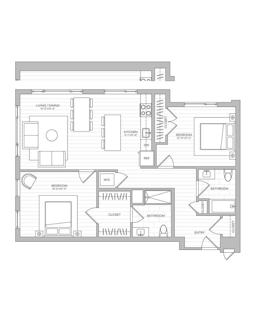 Modelo de apartamento: 2 Bed 2 BathDesde $3,1682 Dormitorios, 2 Baños, 997-1108 sq ftDisponible Ahora![]()