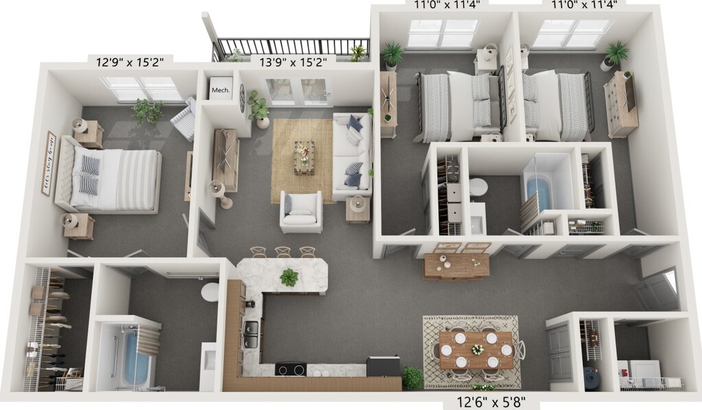 3 Dormitorios, 2 Baños, 1326 pies²Galería del Modelo