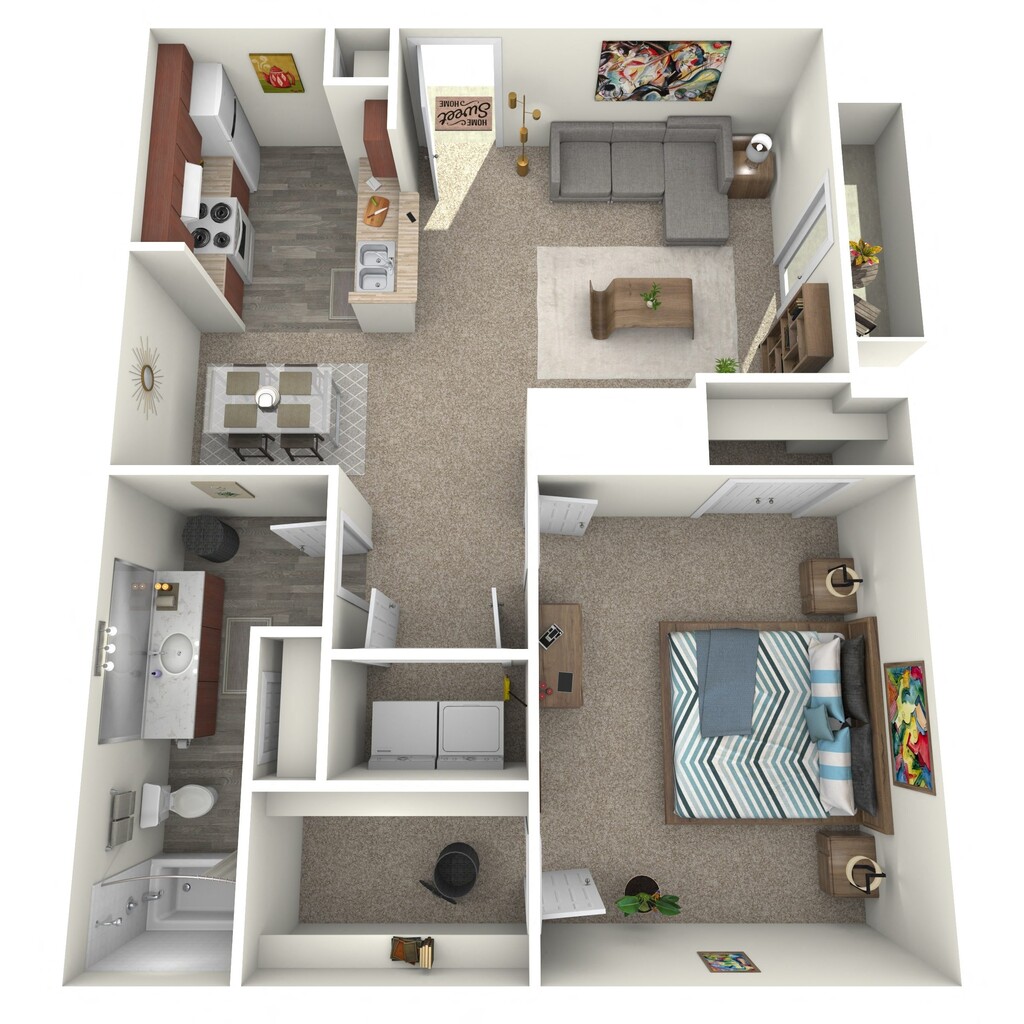 1 Dormitorio, 1 Baño, 806 pies²Disponible February 7, 2026El más grandeEsta opción tiene las unidades más grandes para este modeloGalería del Modelo
