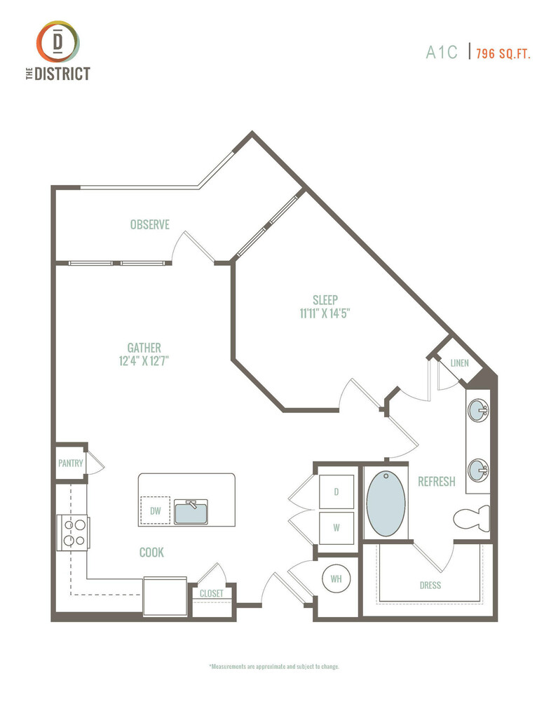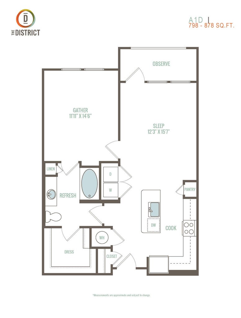 The District ofrece apartamentos de 1 a 3 Dormitorios desde $1,570 con 578–2,990 pies cuadrados. Aquí está el precio actual y la disponibilidad: