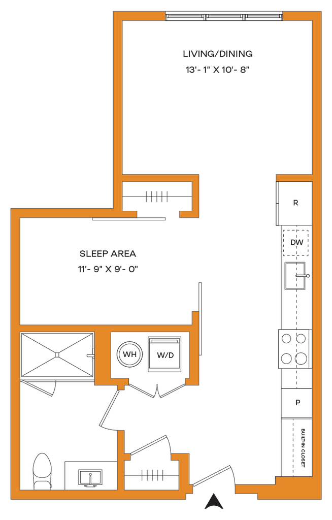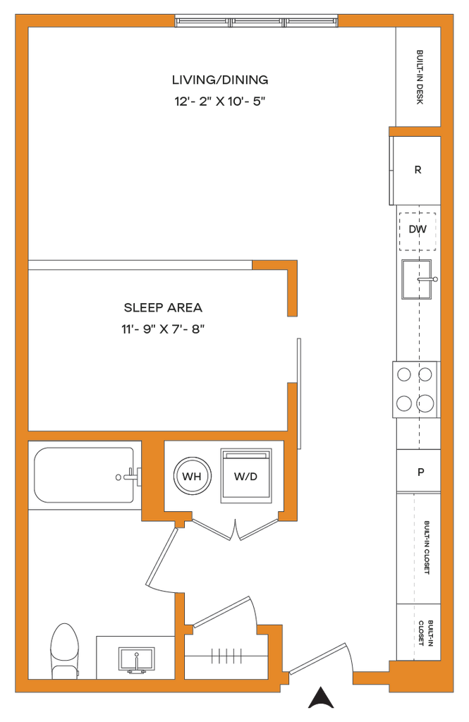 Estudio, 1 Baño, 584 pies²Disponible AhoraGalería del Modelo