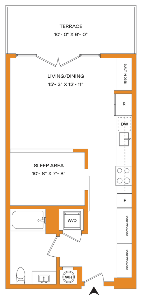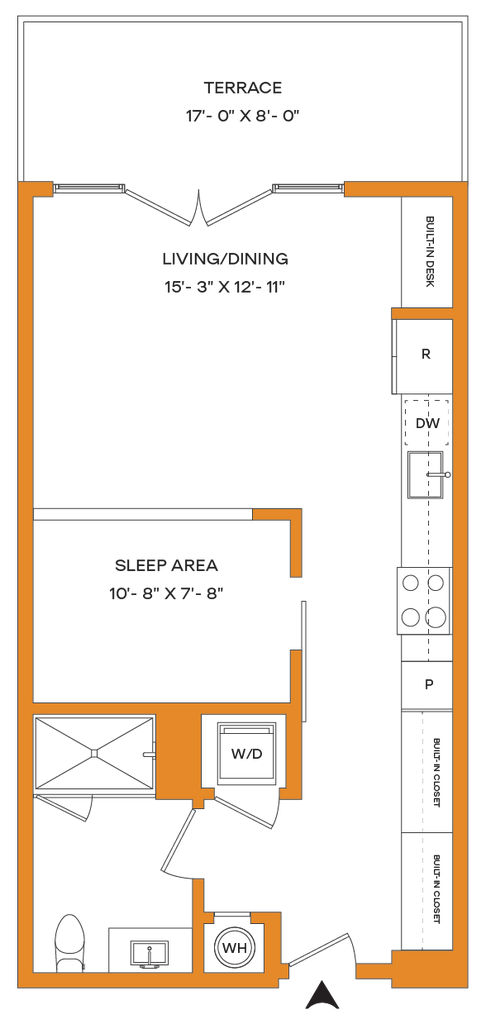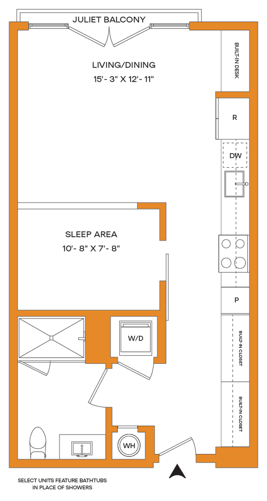 Estudio, 1 Baño, 578 pies²Disponible AhoraGalería del Modelo