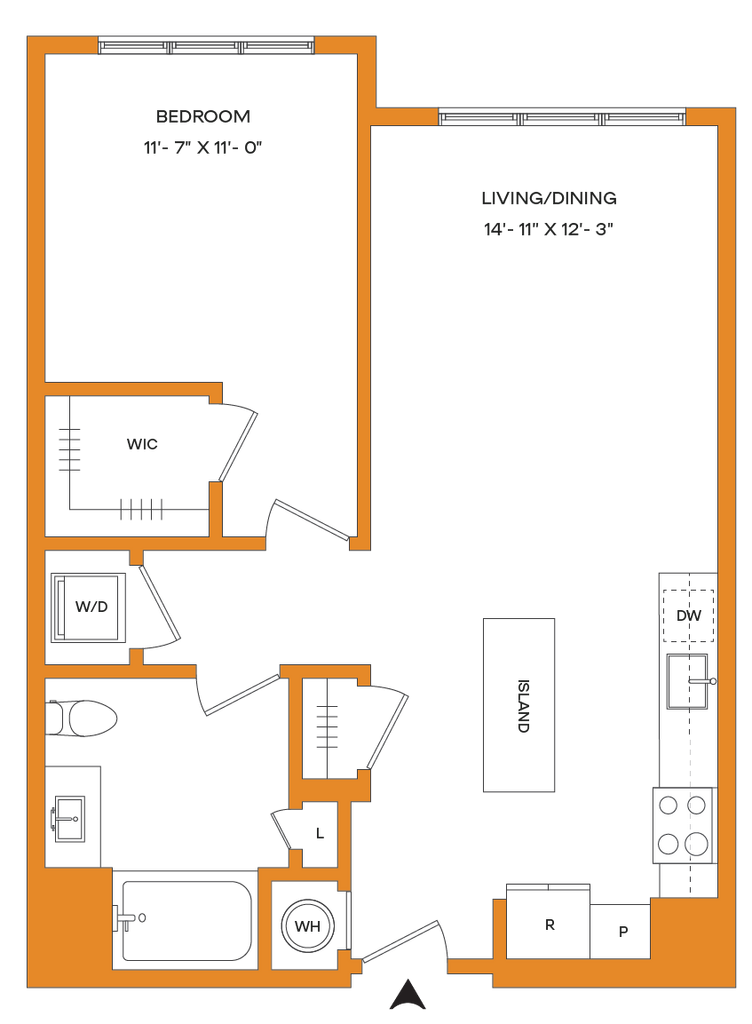 Estudio, 1 Baño, 553-561 pies²Galería del Modelo