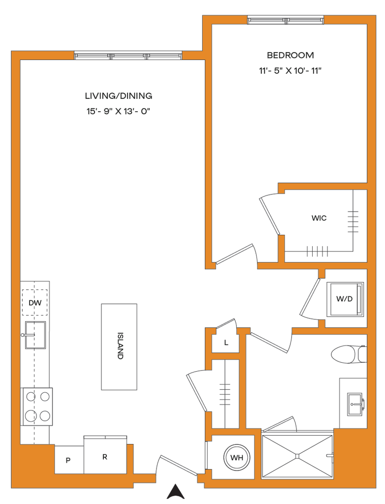Modelo de apartamento: Studio-S6 MasonLlame para PreciosEstudio, 1 Baño, 553 sq ftNo Disponible![]()