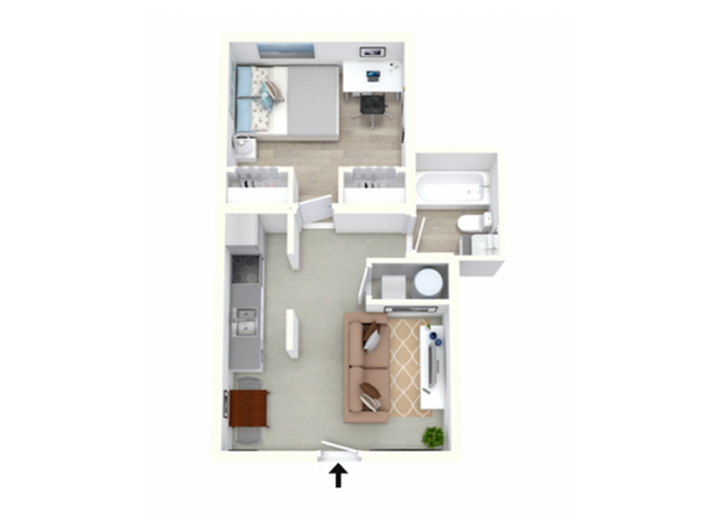 1 Dormitorio, 1 Baño, 600 pies²Disponible August 1, 2026Galería del Modelo