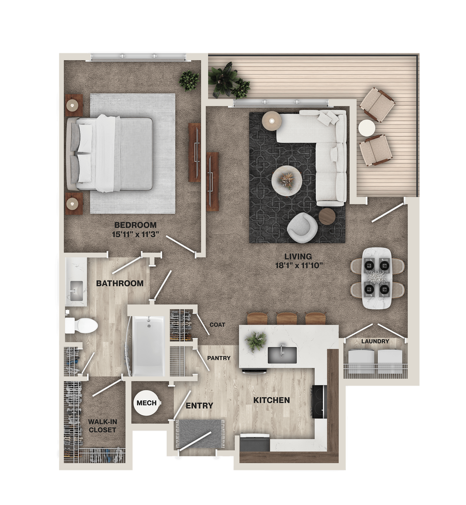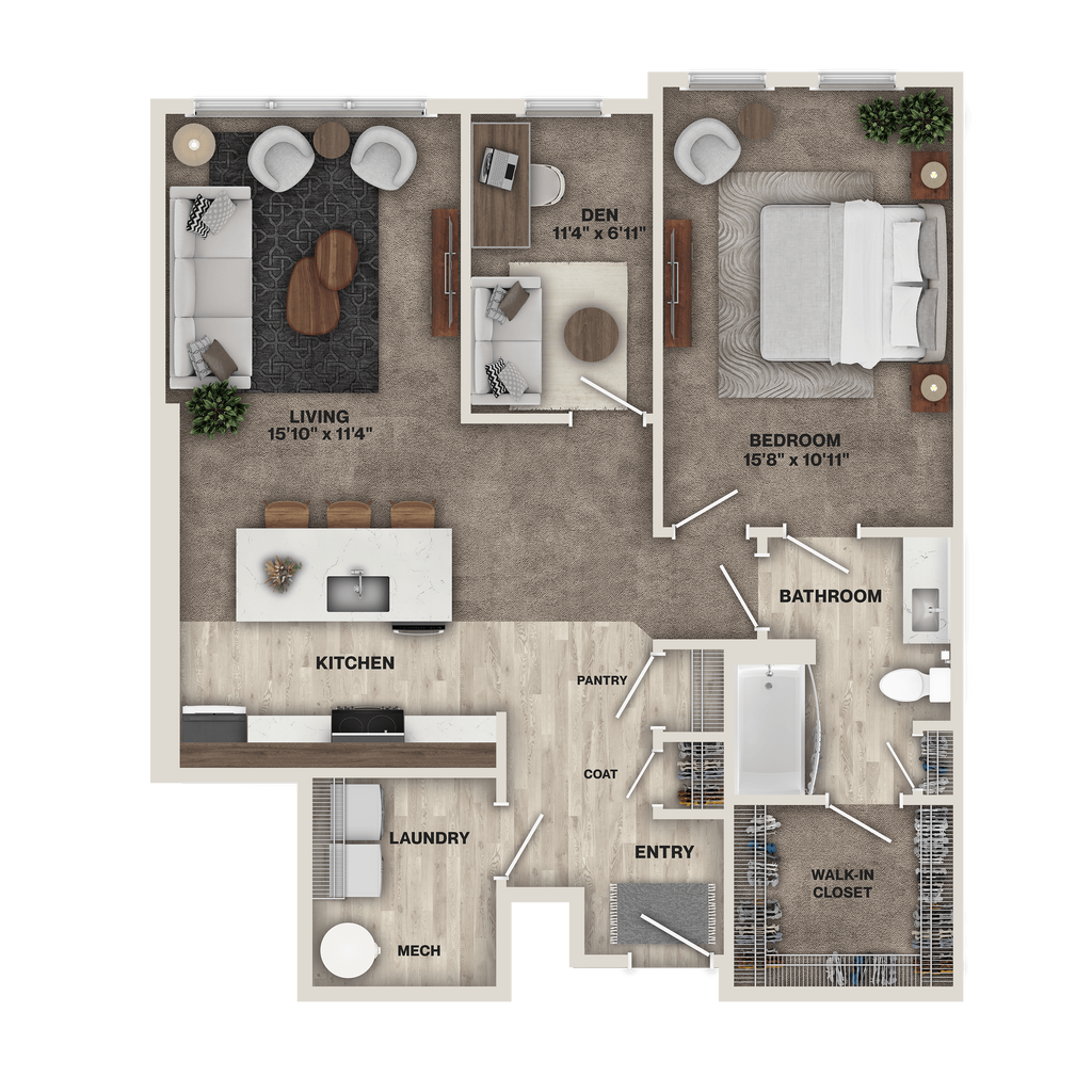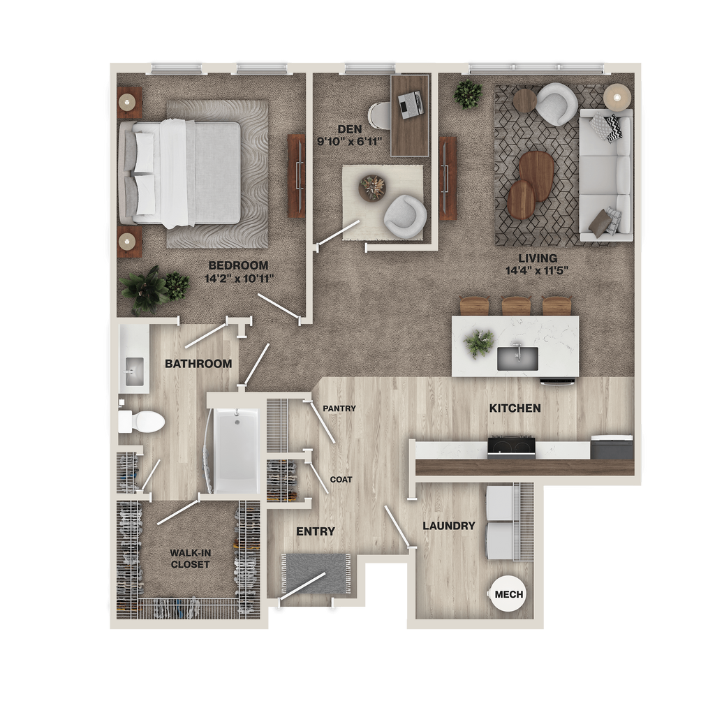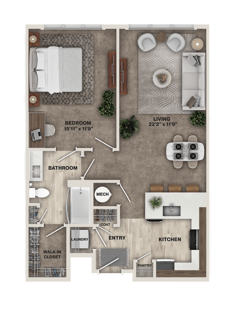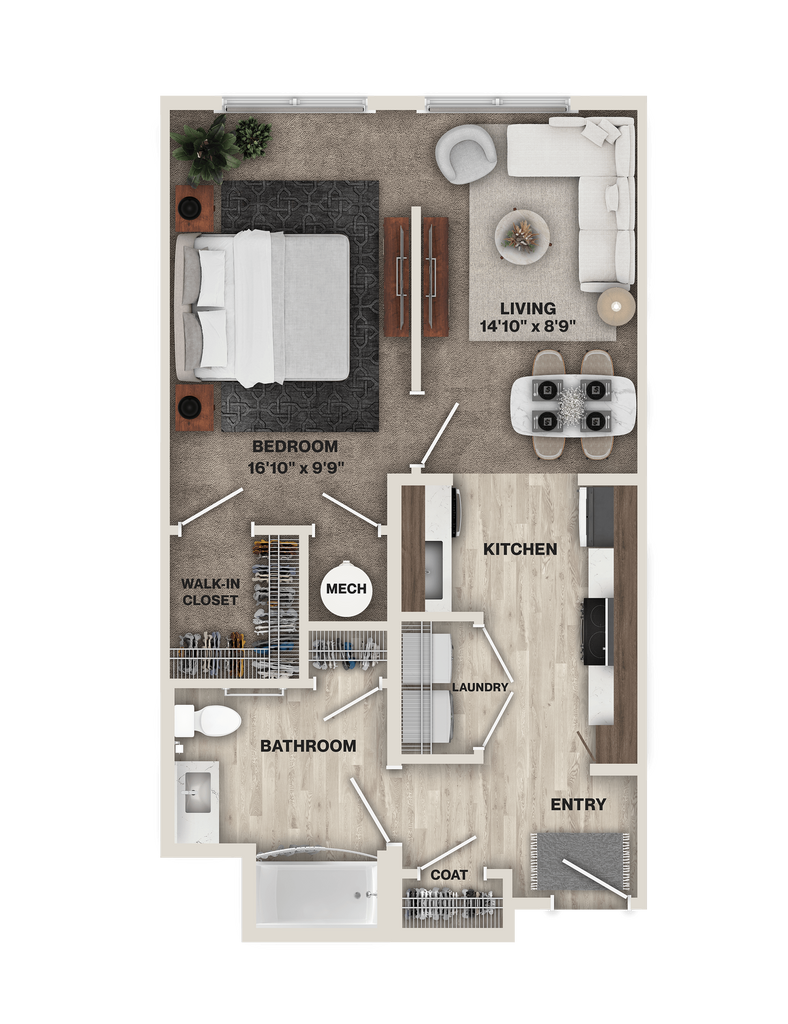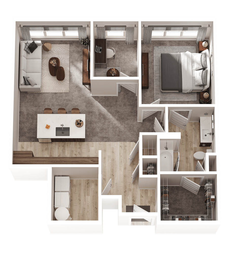 1 Dormitorio, 1 Baño, 859-888 pies²Disponible AhoraGalería del Modelo
