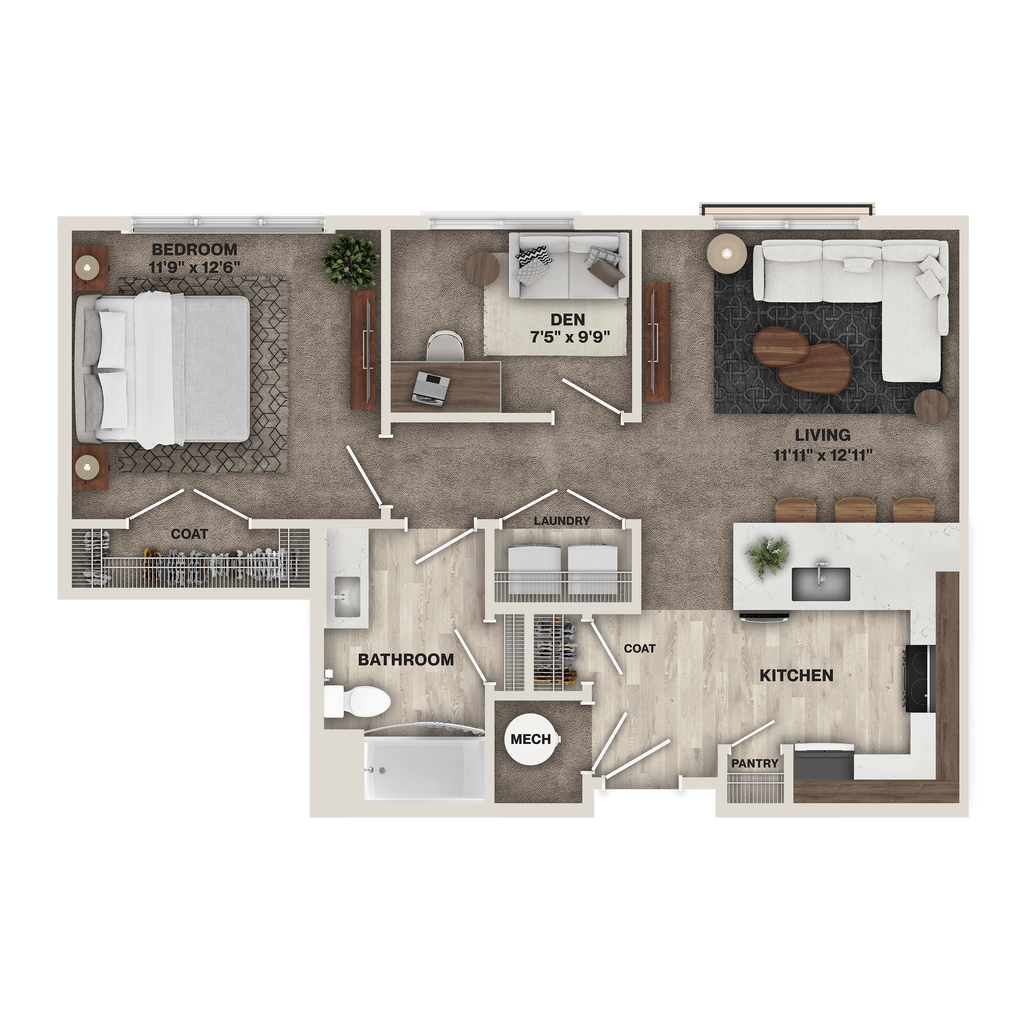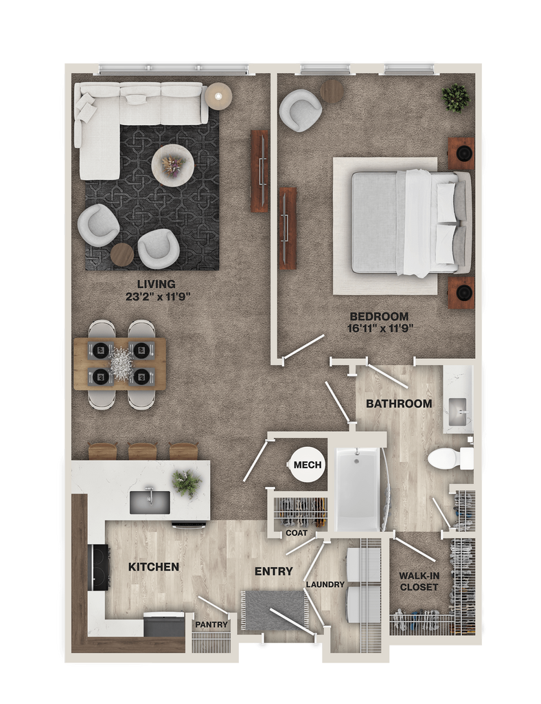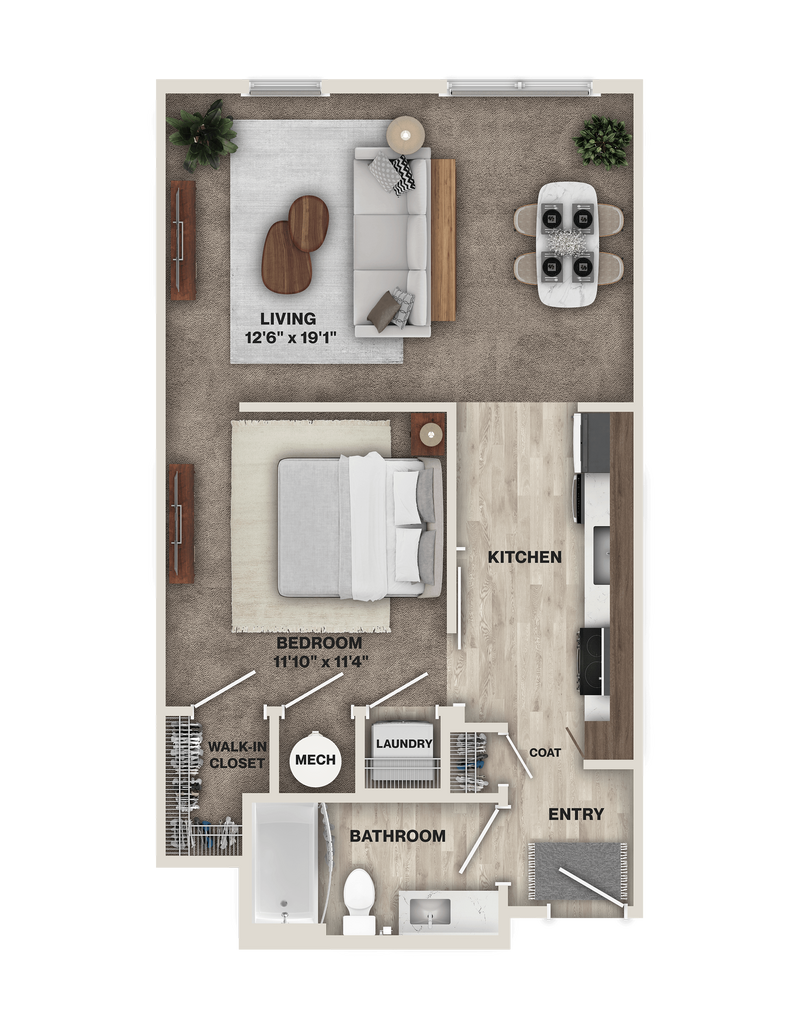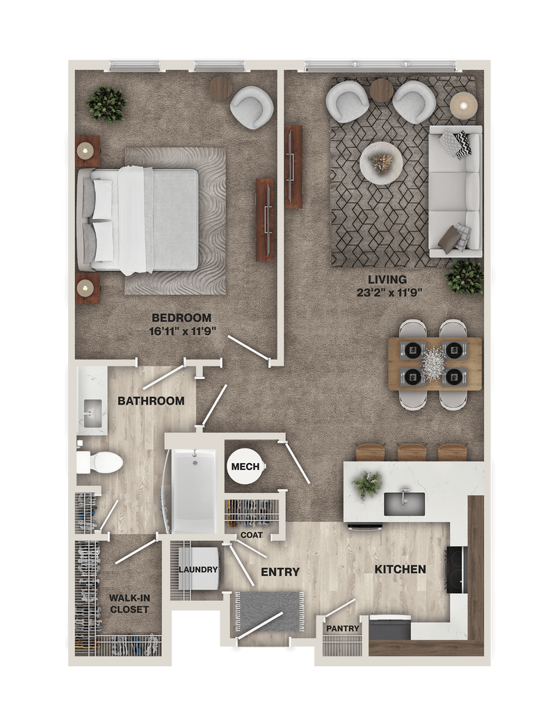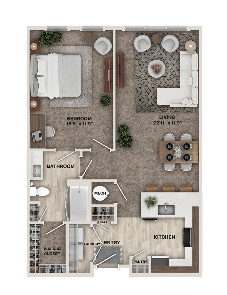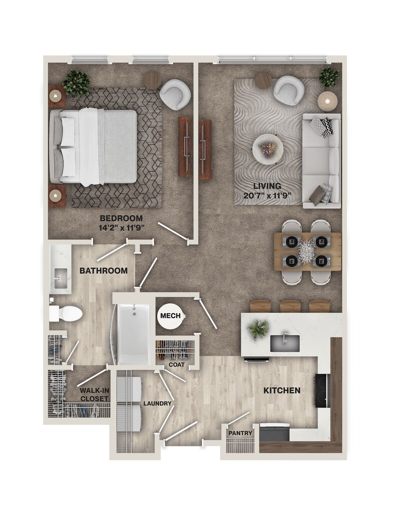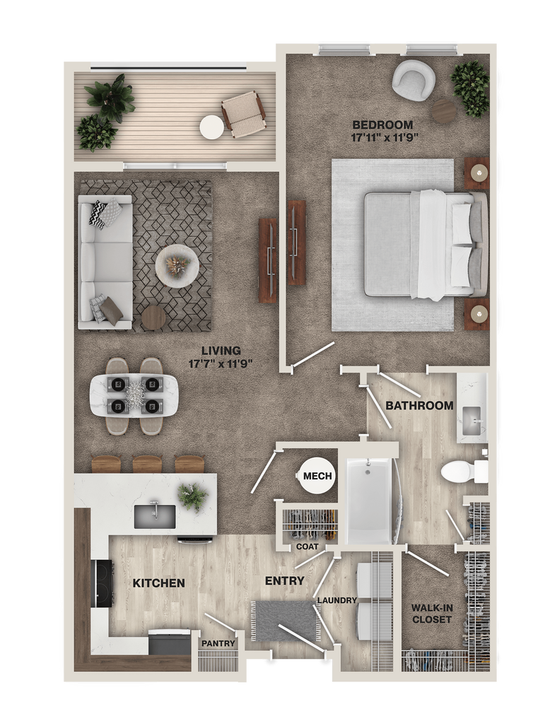 1 Dormitorio, 1 Baño, 859-888 pies²Disponible AhoraGalería del Modelo
