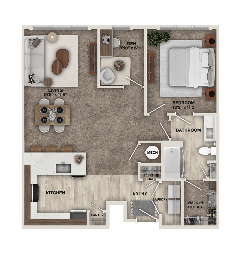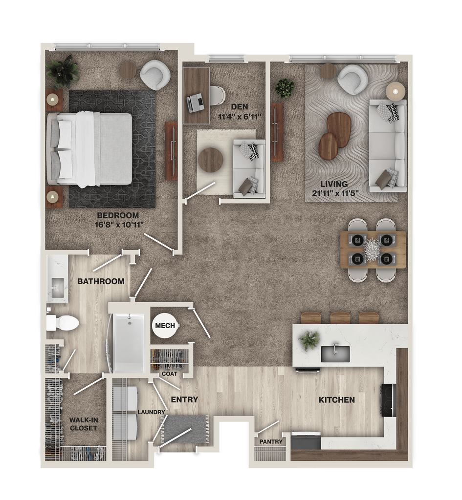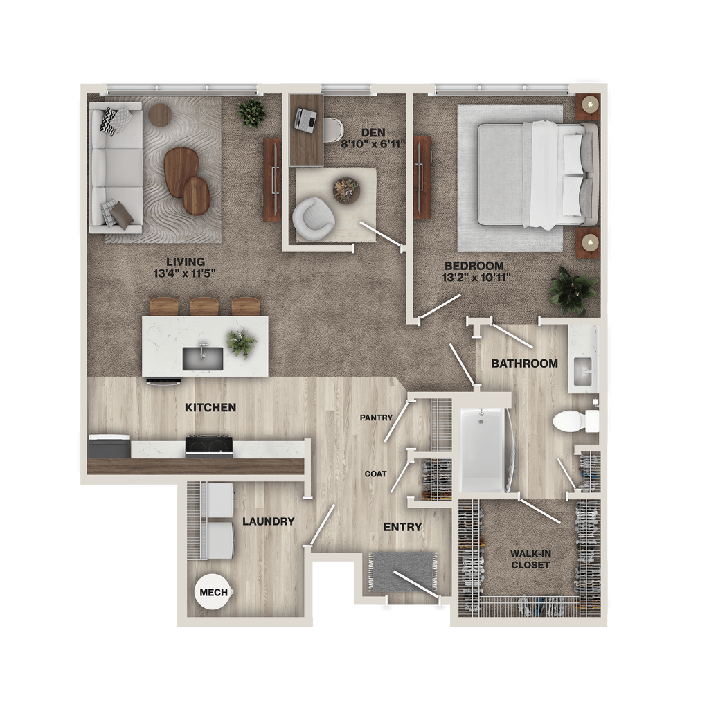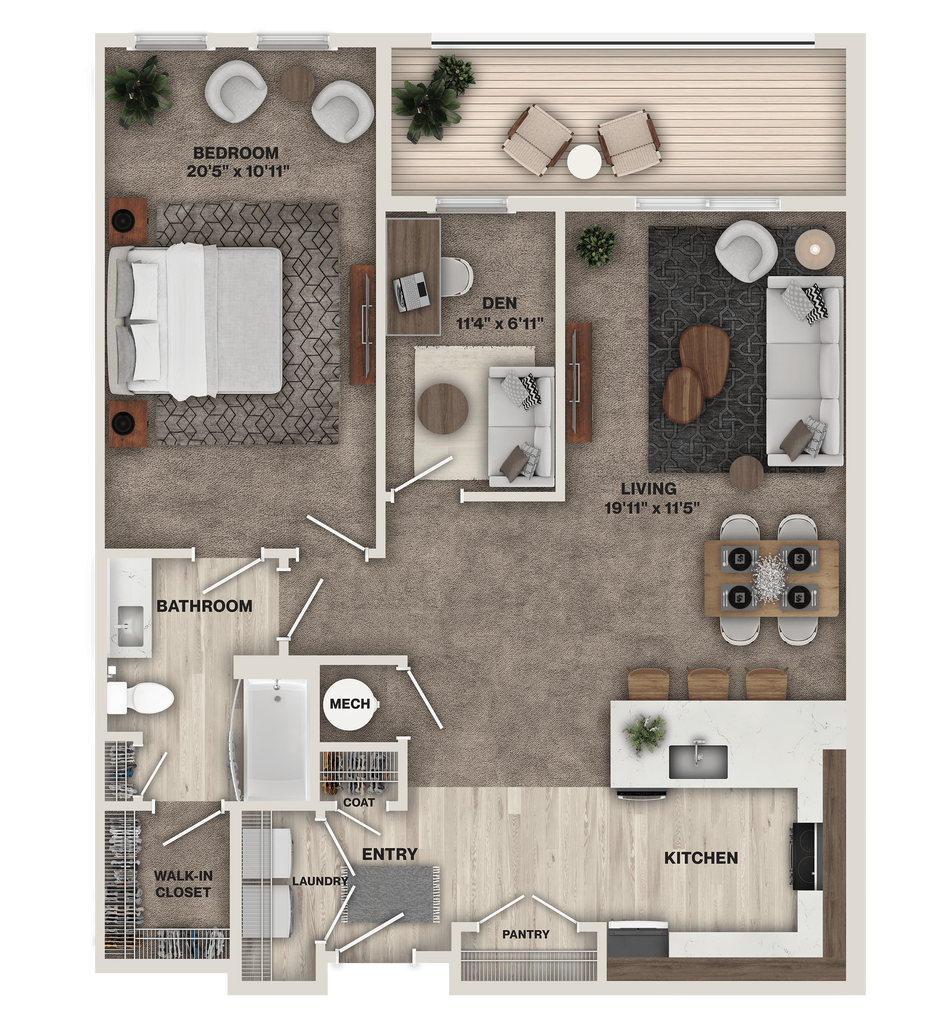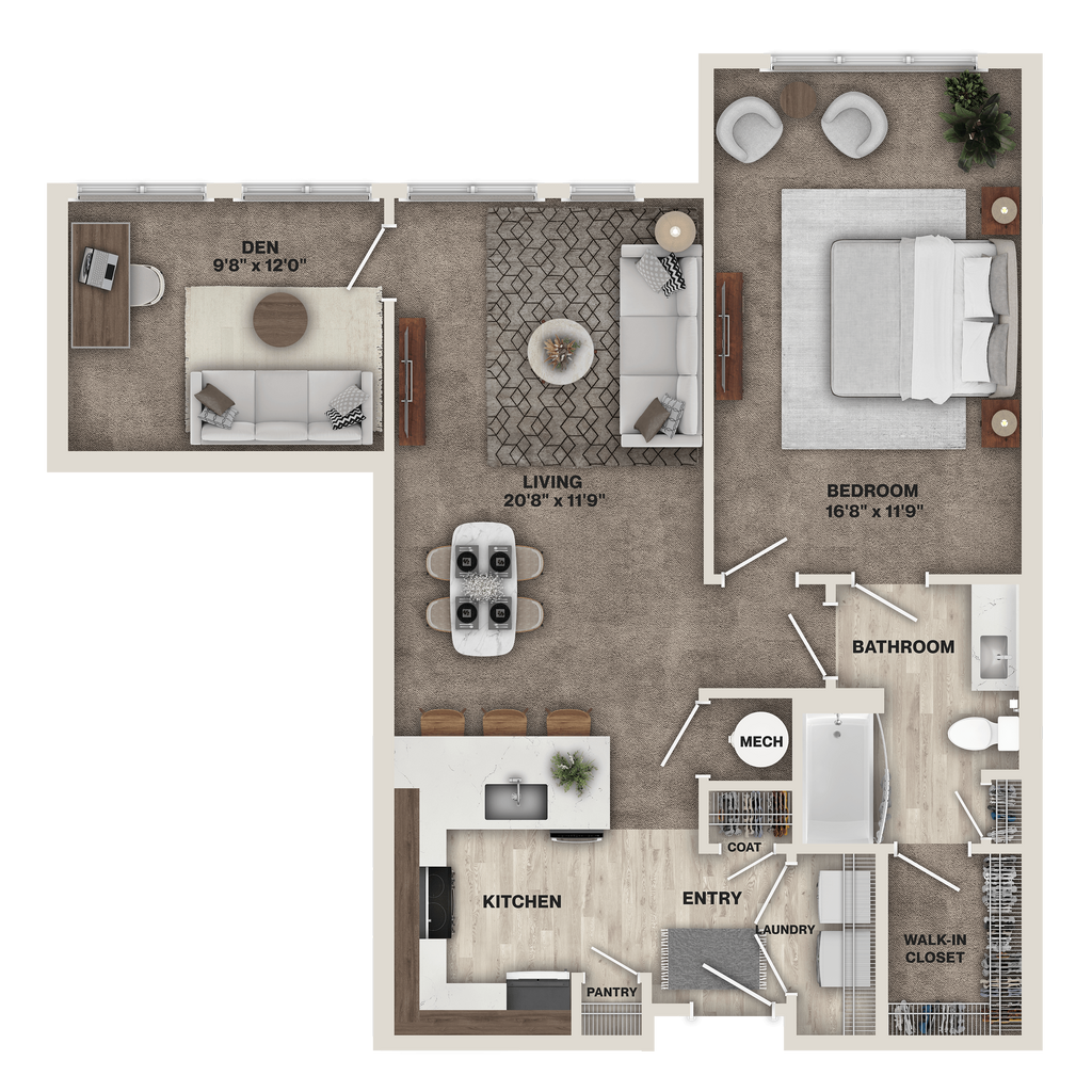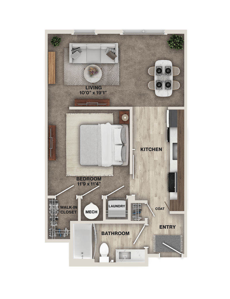 1 Dormitorio, 1 Baño, 859-888 pies²Disponible AhoraGalería del Modelo