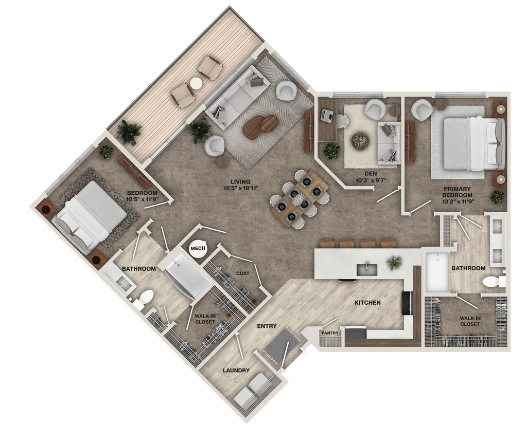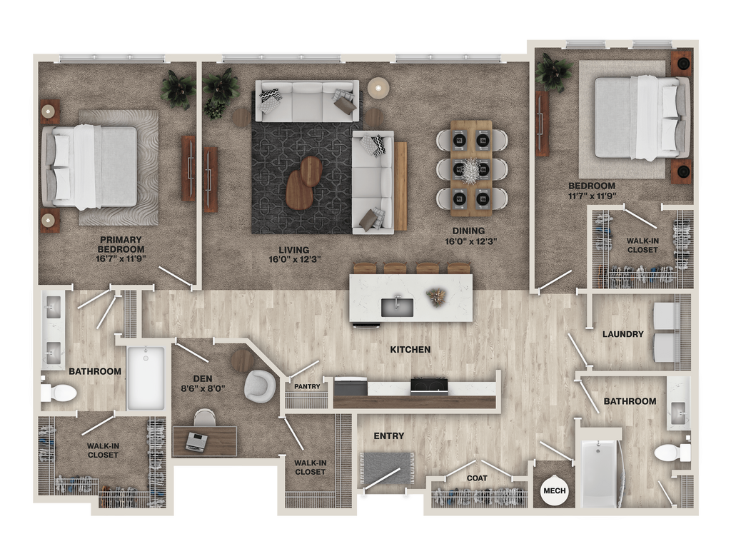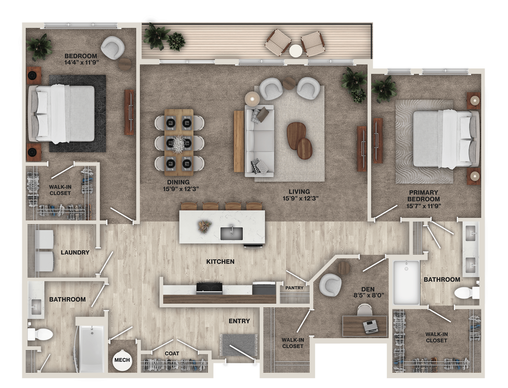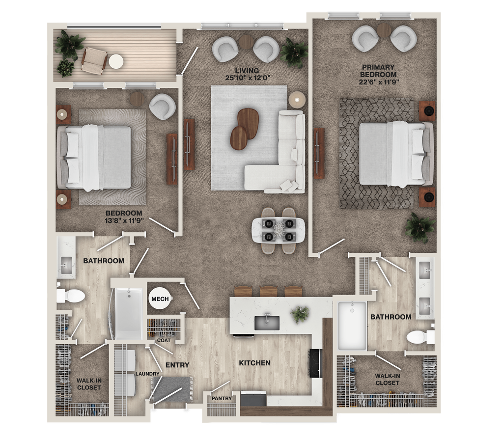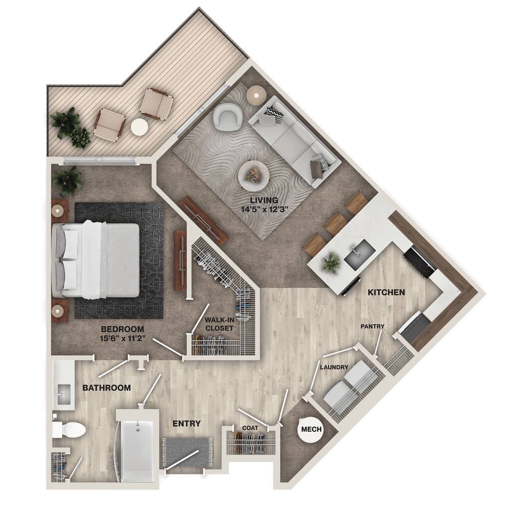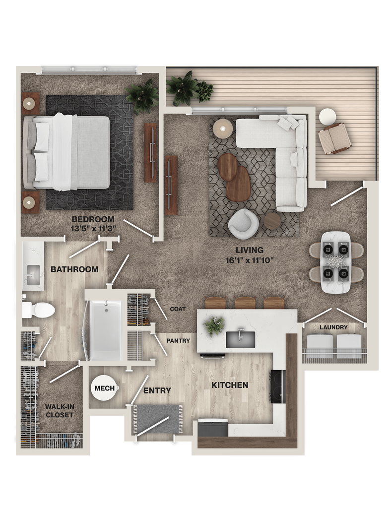 1 Dormitorio, 1 Baño, 859-888 pies²Disponible AhoraGalería del Modelo