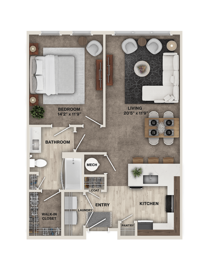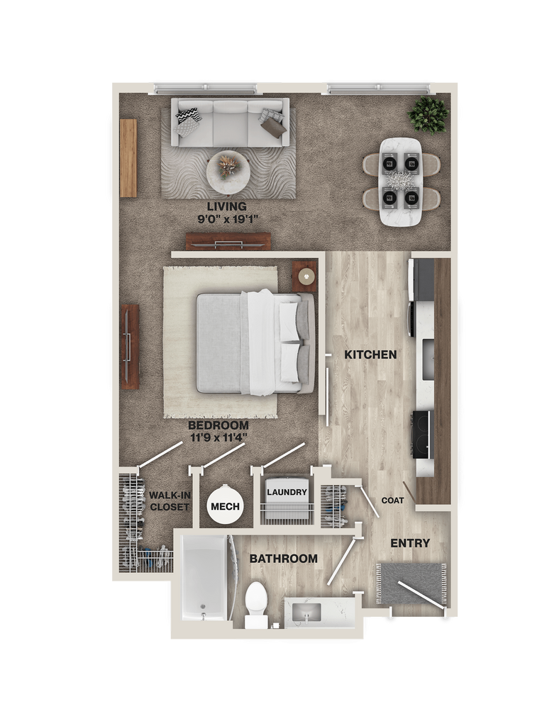 1 Dormitorio, 1 Baño, 859-888 pies²Precio Mensual TotalDisponible AhoraGalería del Modelo
