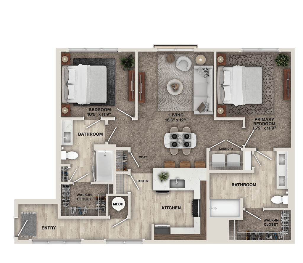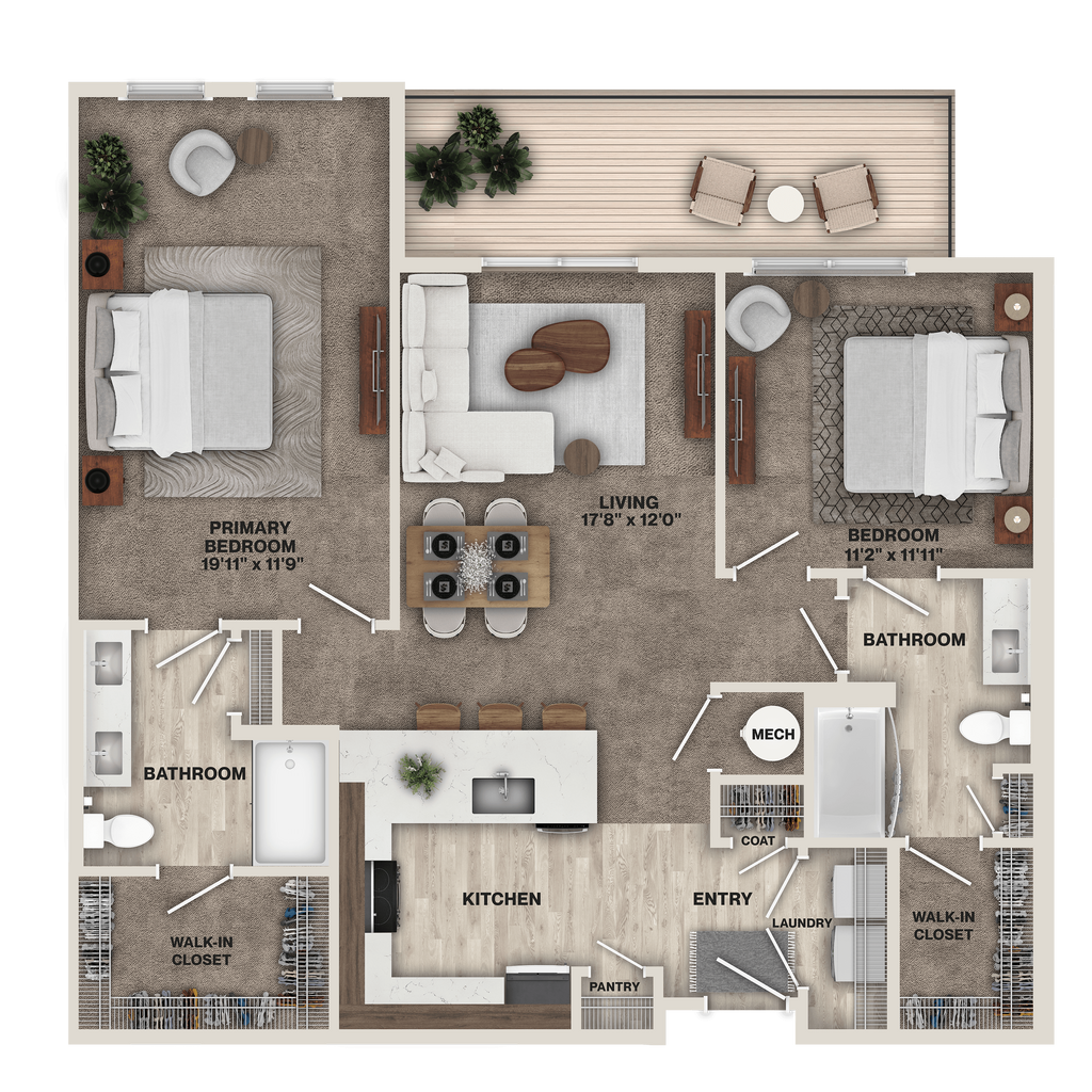 Modelo de apartamento: 1 Bed 1 Bath (A2)Desde $1,7151 Dormitorio, 1 Baño, 859-888 sq ftDisponible Ahora![]()