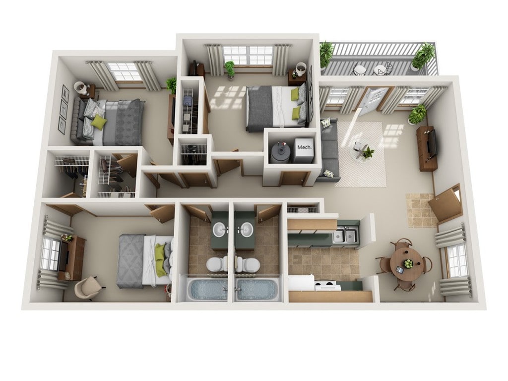 Modelo de apartamento: 3 Bedroom/ 2 BathDesde $1,0003 Dormitorios, 2 Baños, 1080 sq ftDisponible Ahora![]()
