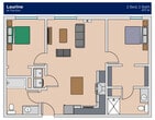 Modelo de apartamento: Laurine$1,2302 Dormitorios, 2 Baños, 877 sq ftDisponible AhoraLaurine - Plano 1 3 Dormitorios