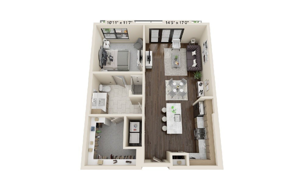 1 Dormitorio, 1 Baño, 1006 pies²Galería del Modelo