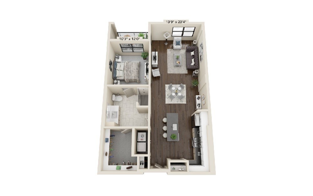 1 Dormitorio, 1 Baño, 1013 pies²Galería del Modelo