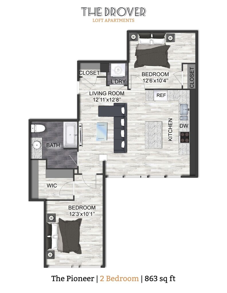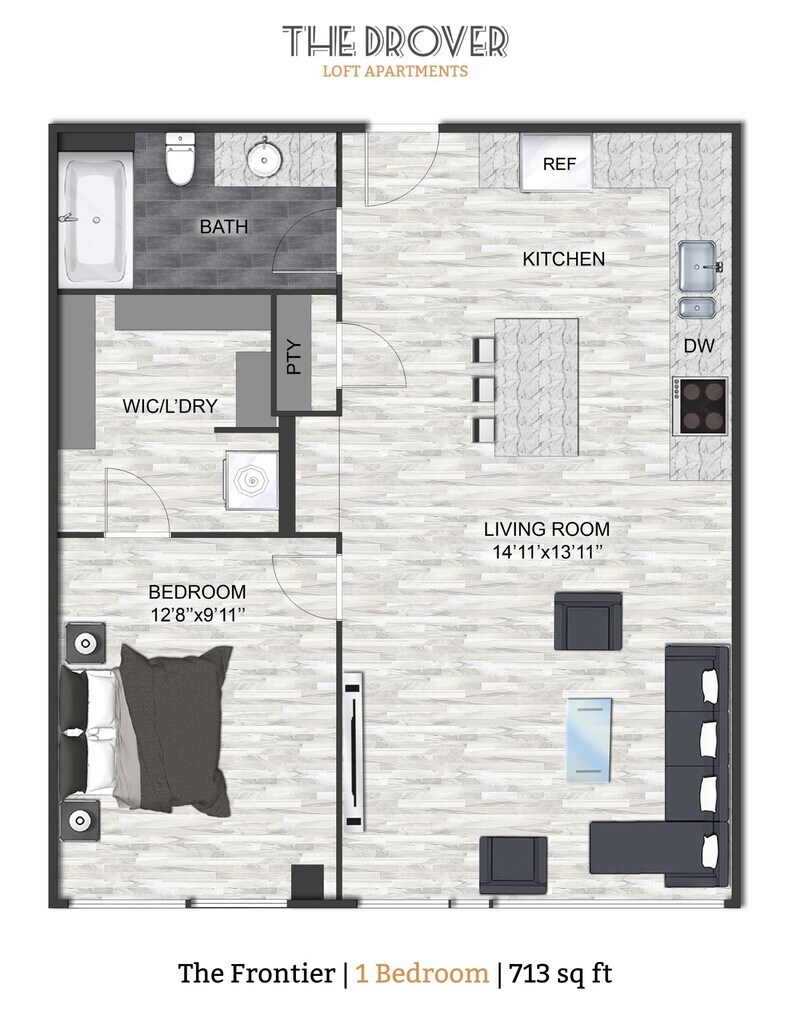 Modelo de apartamento: The Traverse$1,2941 Dormitorio, 1 Baño, 566 sq ftDisponible AhoraLos planos son representaciones artísticas. Todas las dimensiones son aproximadas. El producto y las especificaciones reales pueden variar en tamaño o detalle. No todas las características están disponibles en cada vivienda en alquiler. Por favor, consulta con un representante para obtener más detalles.