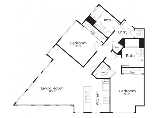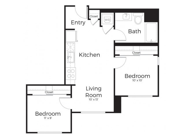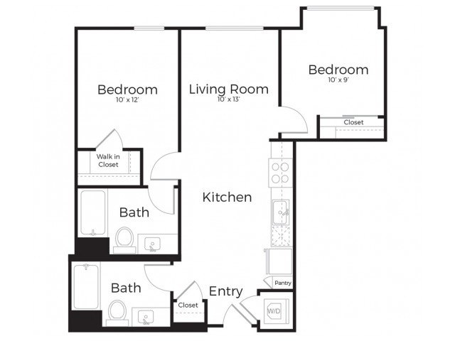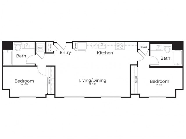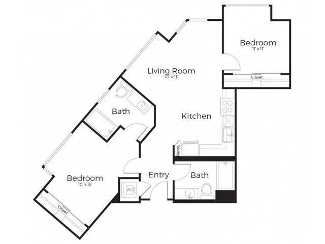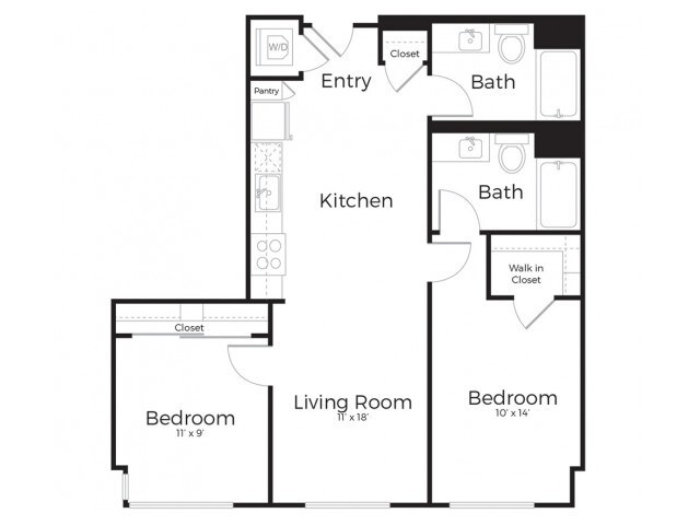 Modelo de apartamento: 2F2 Dormitorios, 2 Baños, 887-968 sq ftNo Disponible![]()
