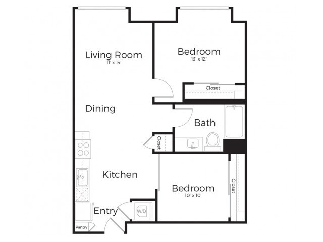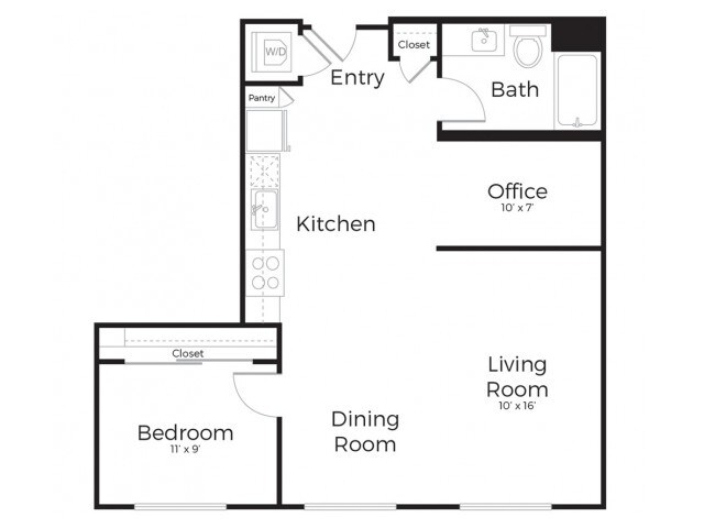 Modelo de apartamento: 1D1 Dormitorio, 1 Baño, 573-587 sq ftNo Disponible![]()