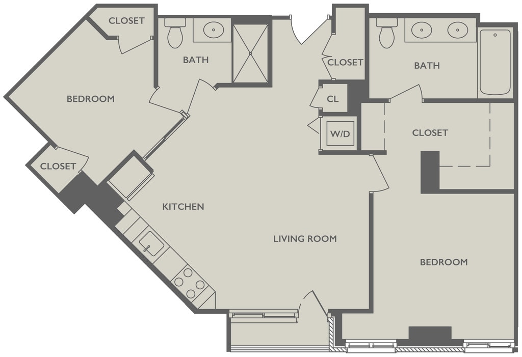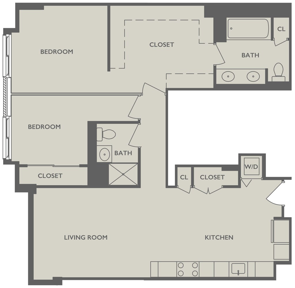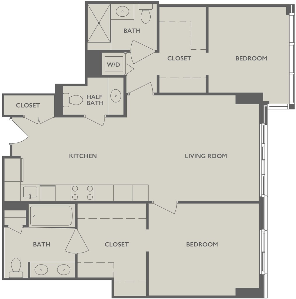 1 Dormitorio, 1.5 Baños, 1000 pies²Disponible AhoraEl más grandeEsta opción tiene las unidades más grandes para este modeloGalería del Modelo