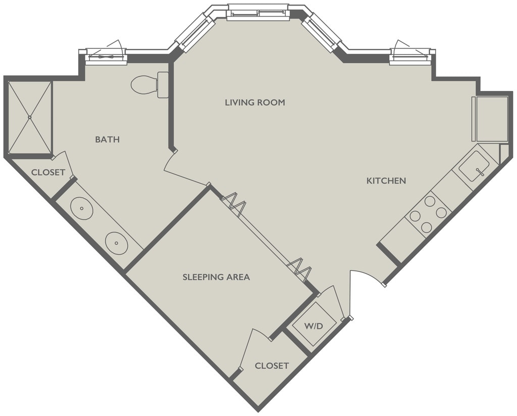 Estudio, 1 Baño, 600 pies²Disponible AhoraGalería del Modelo