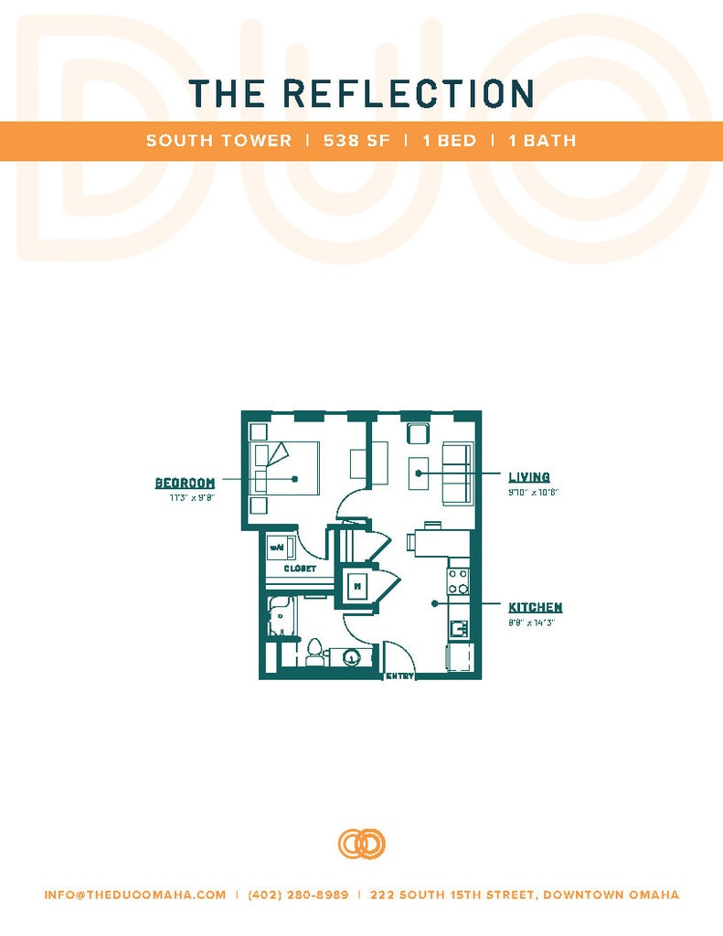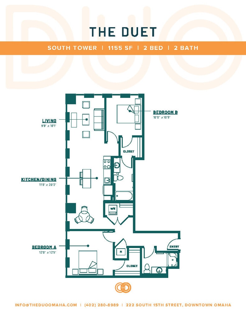 The Duo se encuentra en el Barrio Downtown Omaha y el código postal 68102 de Omaha, NE. Esta comunidad está gestionada profesionalmente por Nustyle Development Corp.